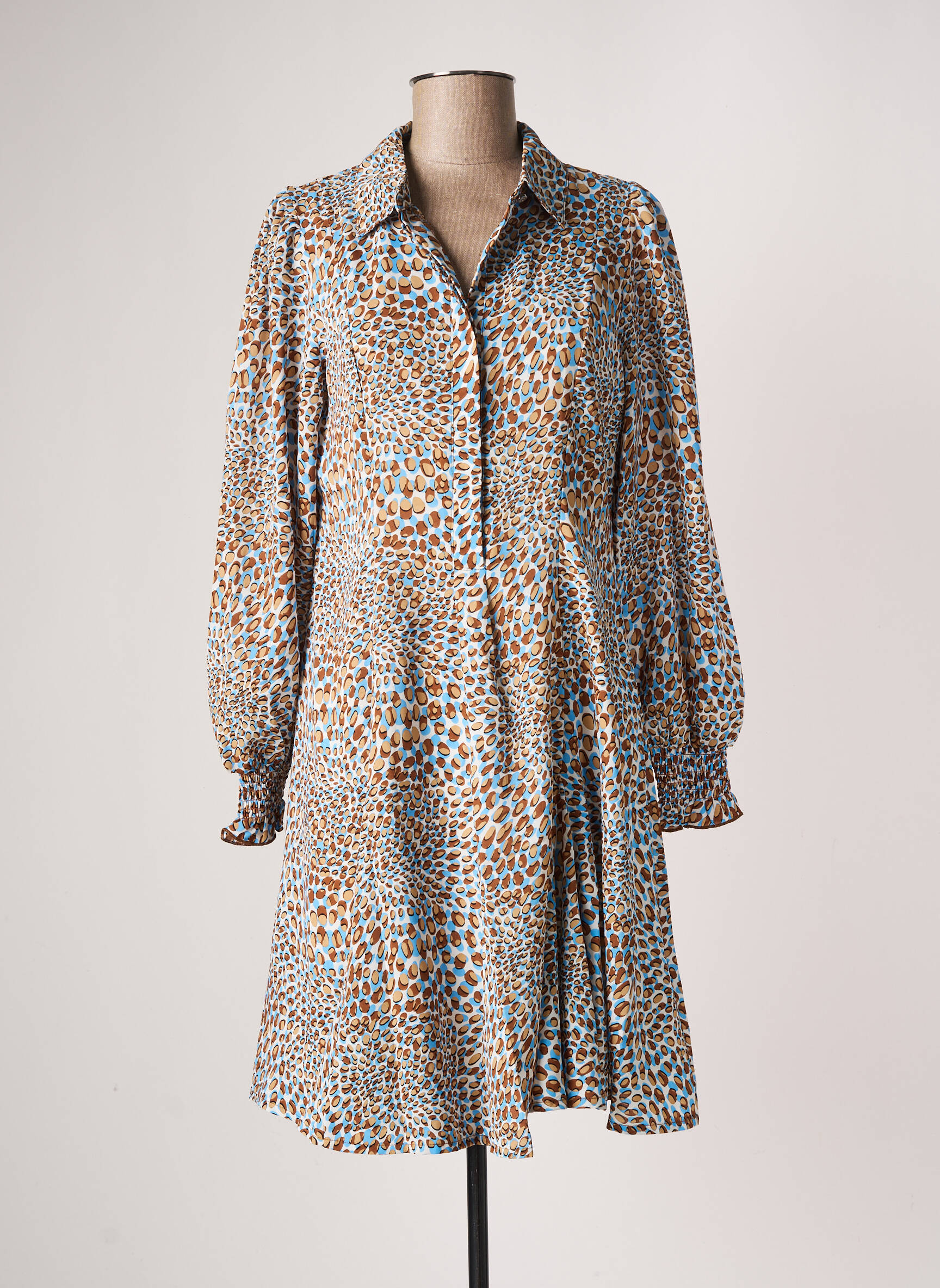 Rochie Midi Marble Bej Mâneci Lungi