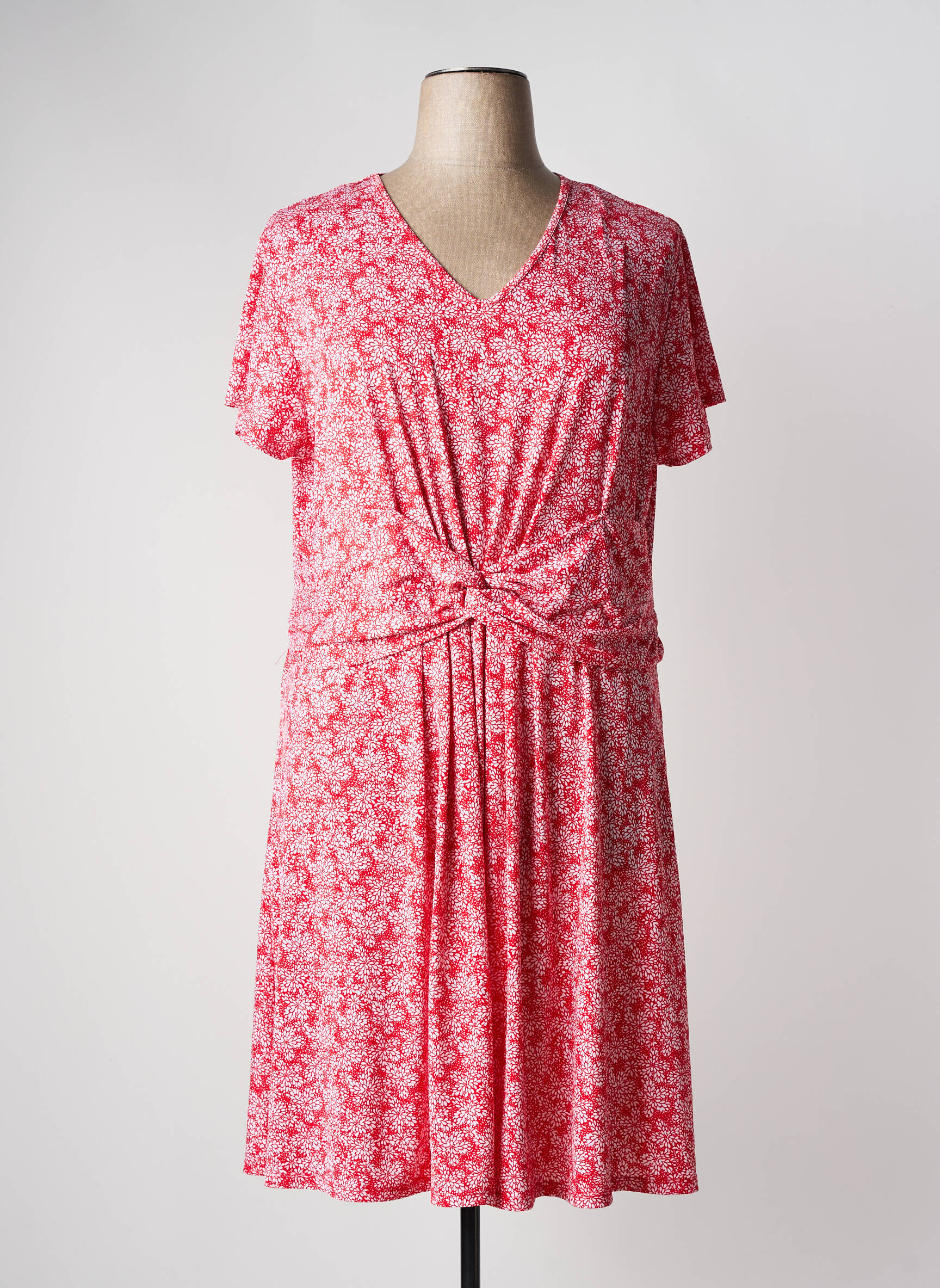 Rochie Midi Marble Roșu Mâneci Scurte
