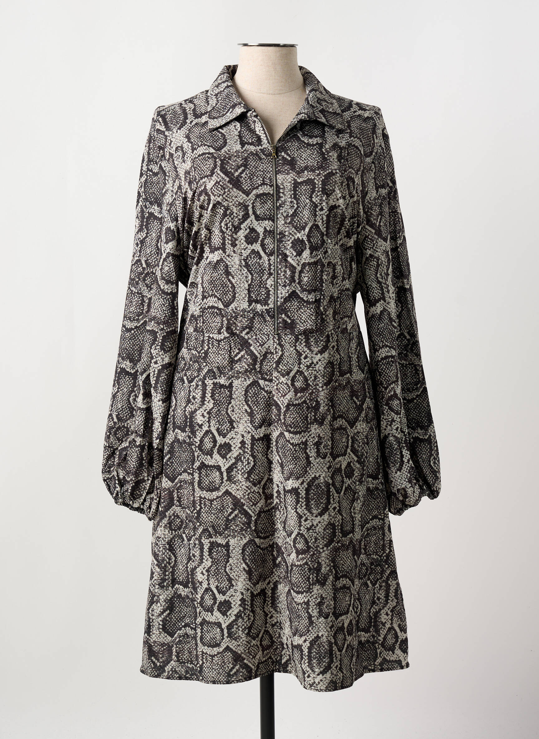 Rochie Midi Mat. Gri Mâneci Lungi