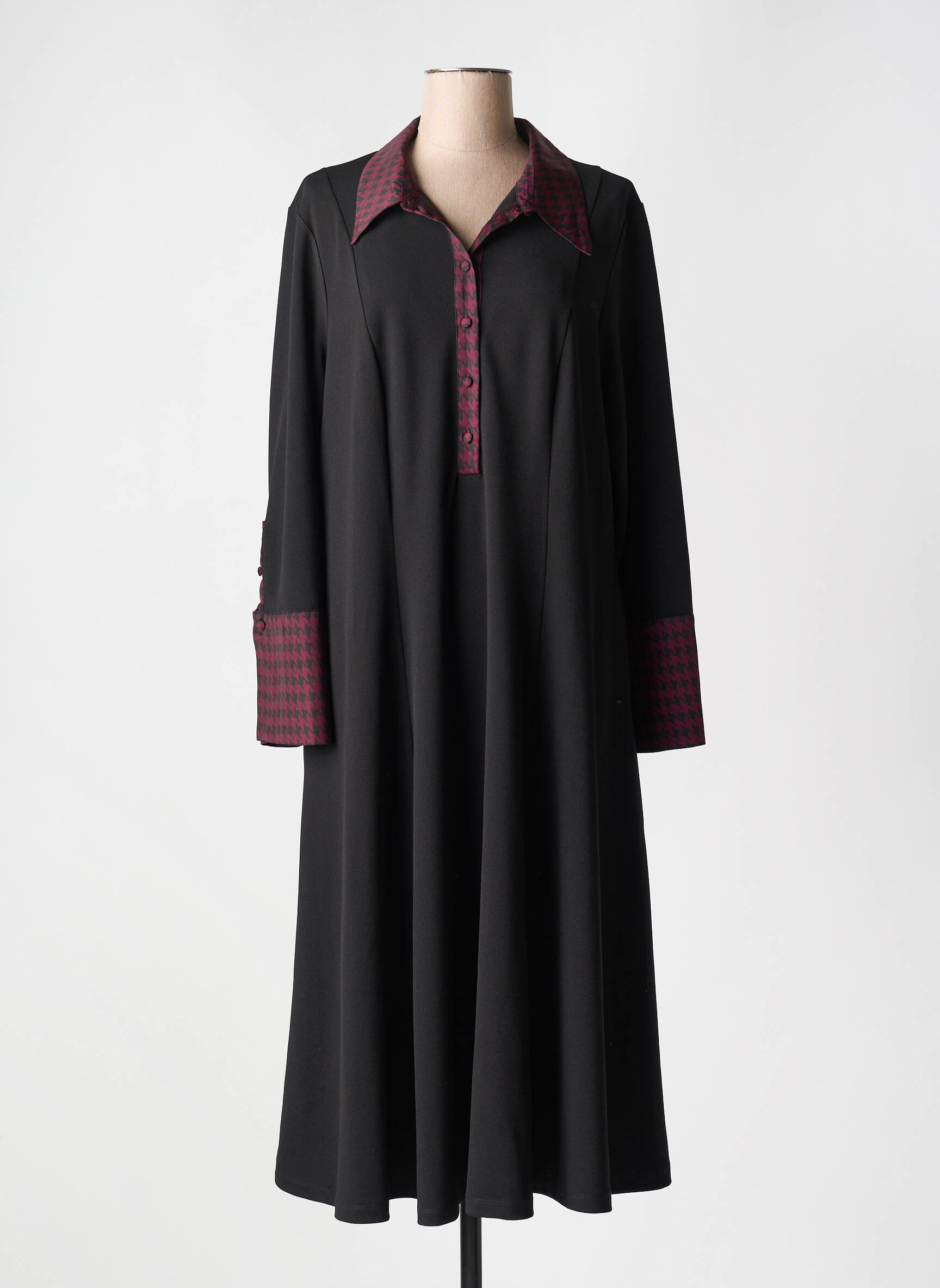 Rochie Midi Mat. Negru Mâneci Lungi