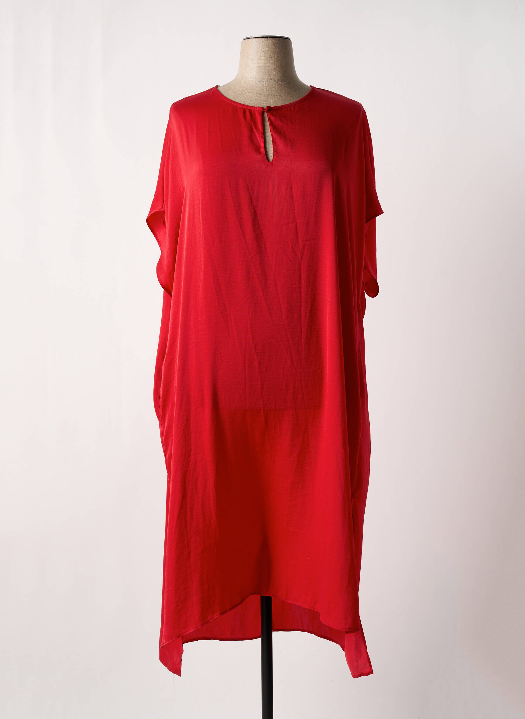 Rochie Midi Mat. Roșu Mâneci Scurte