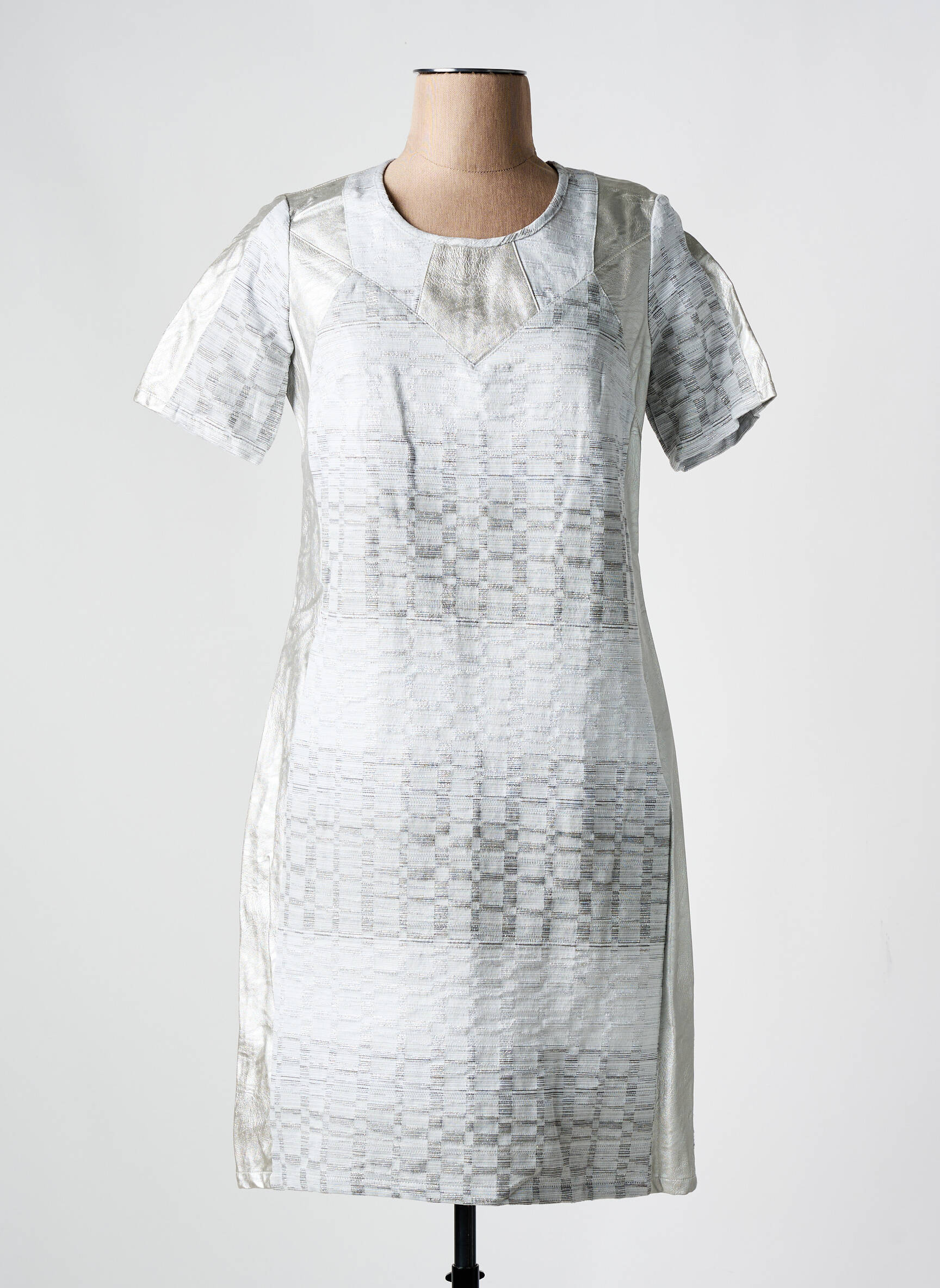 Rochie Midi Meri & Esca Argintiu Mâneci Scurte