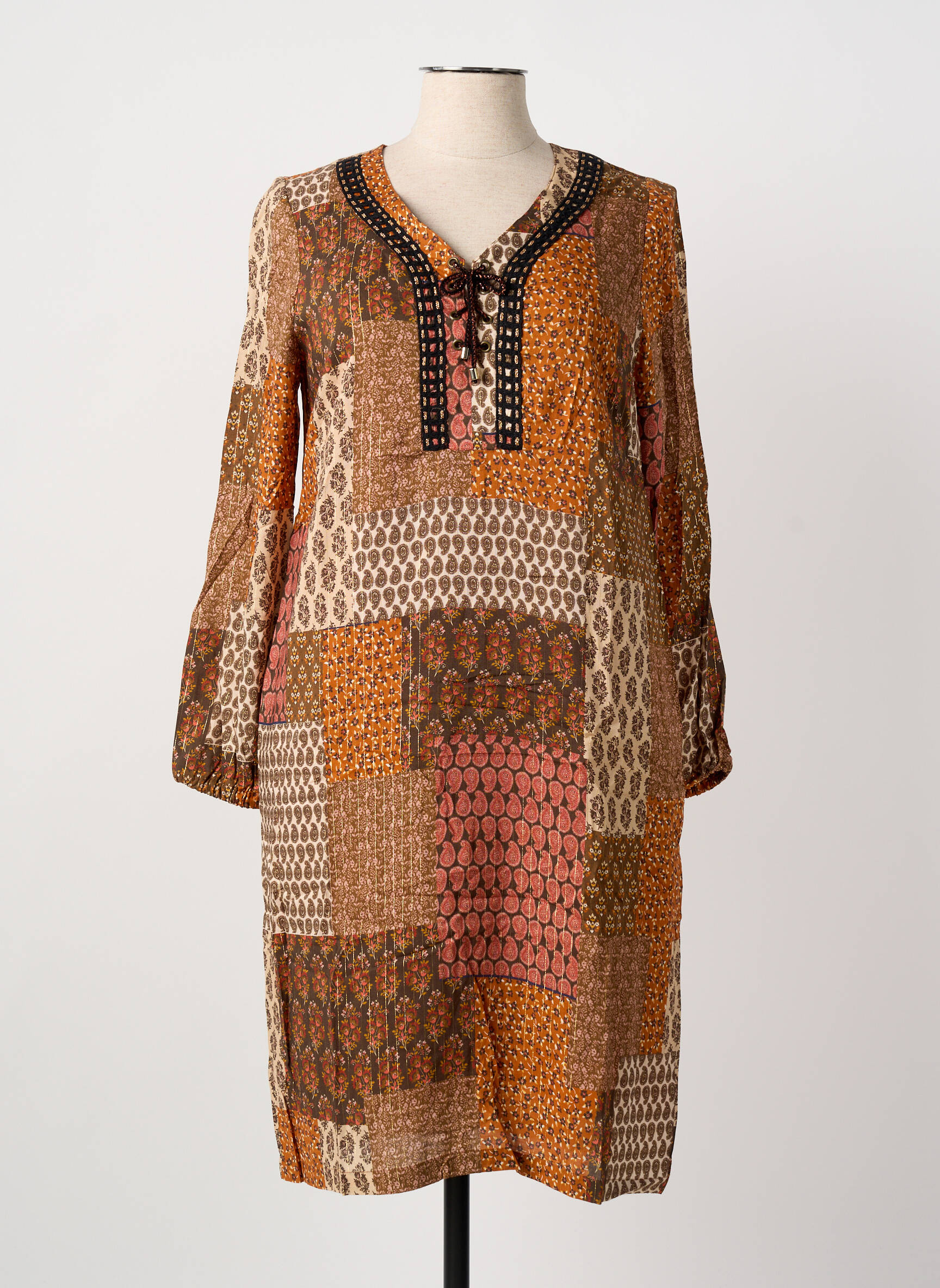 Rochie Midi Meri & Esca Portocaliu Mâneci Lungi