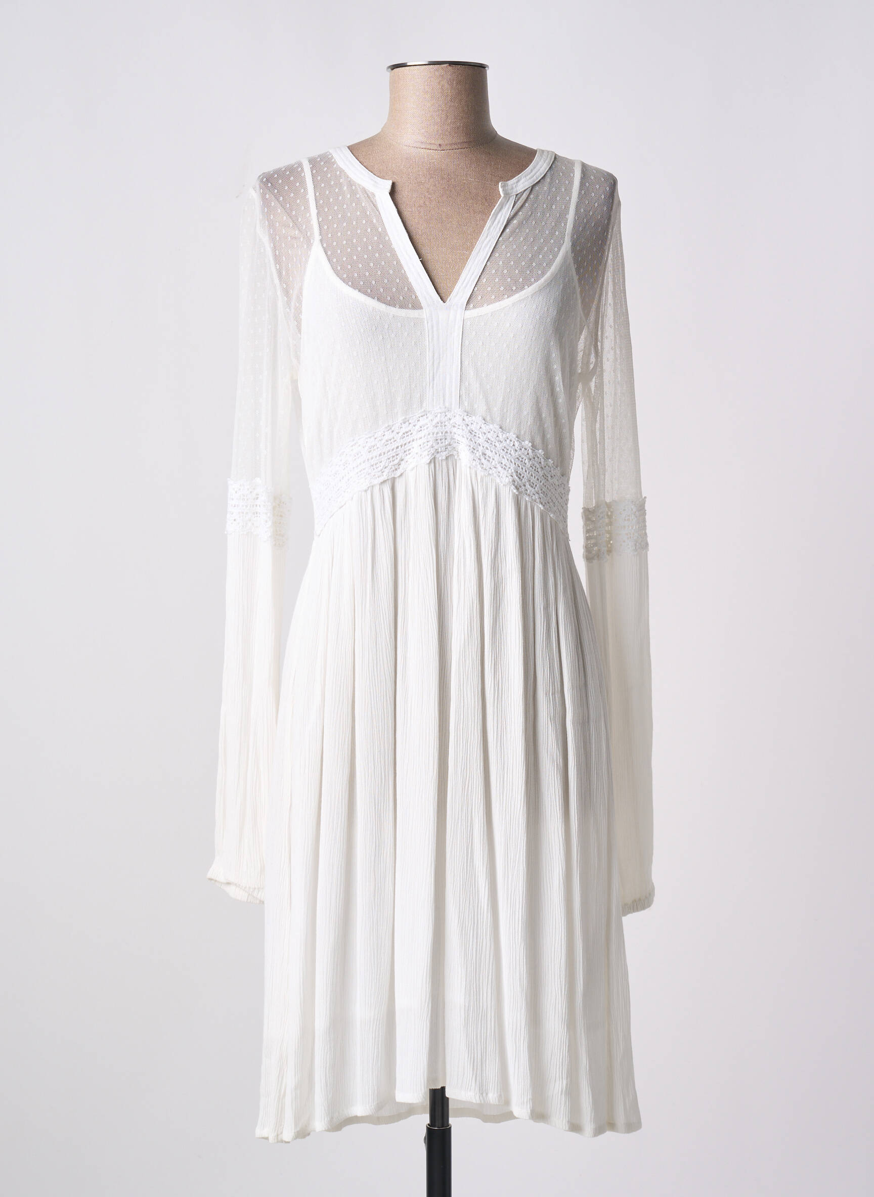 Rochie Midi Mismash Alb Mâneci Lungi