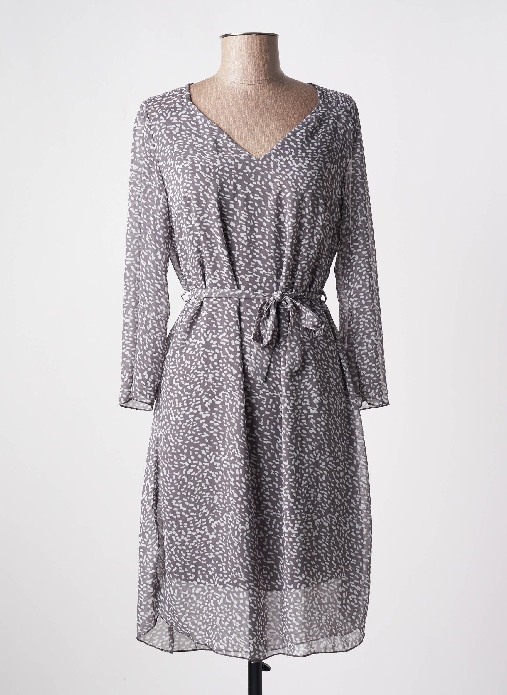 Rochie Midi Multiples Gri Mâneci Lungi