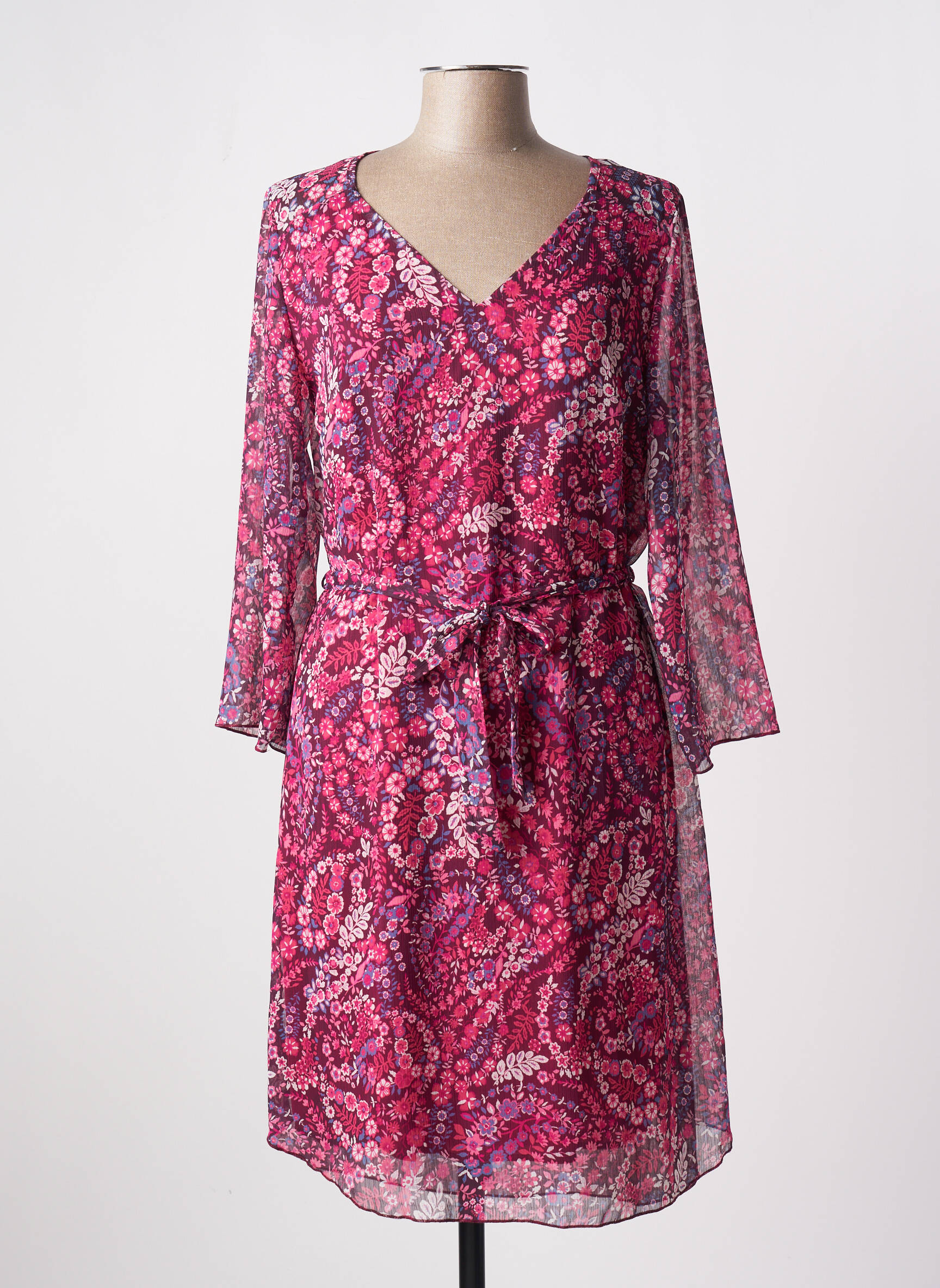 Rochie Midi Multiples Roz Mâneci 3/4