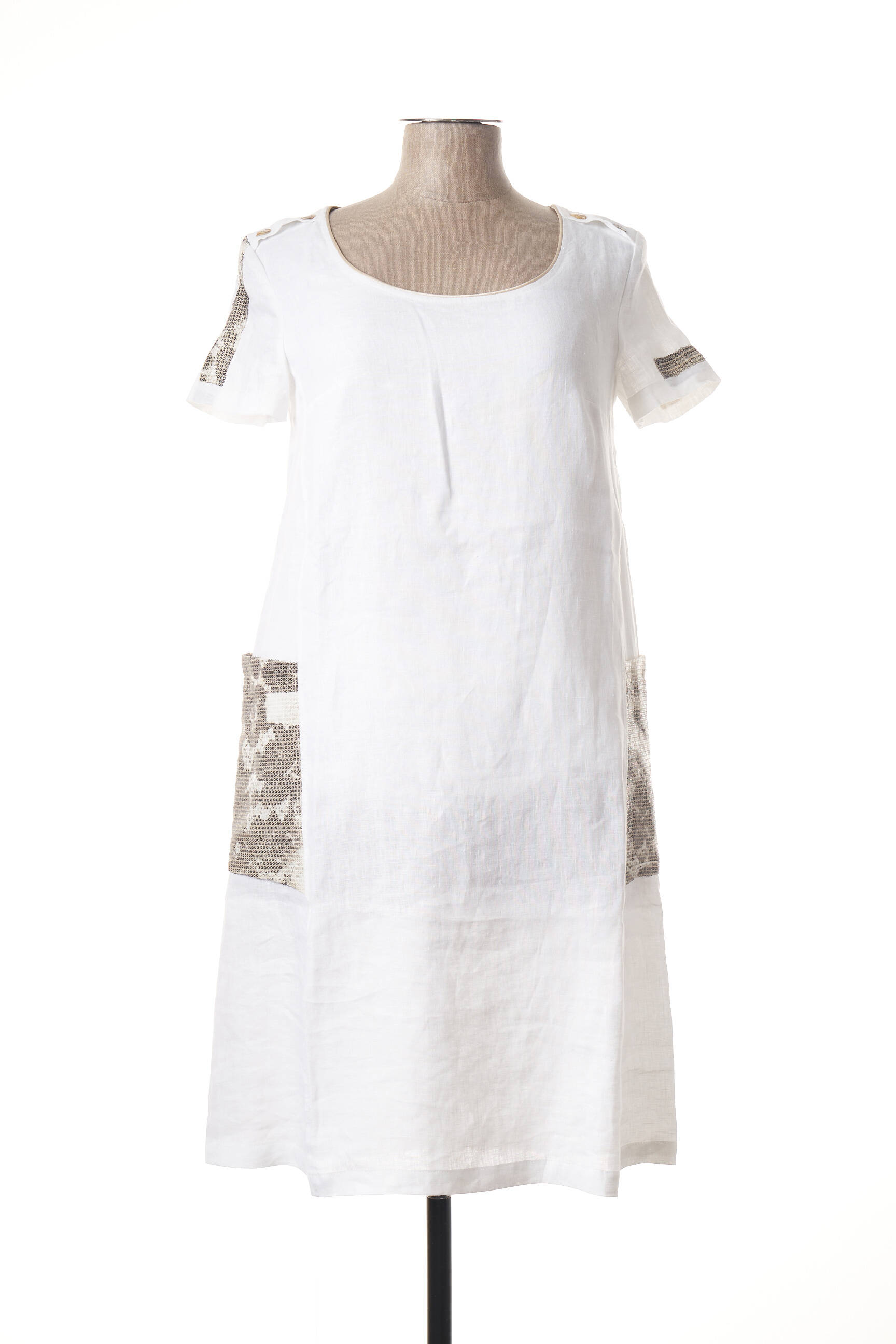 Rochie Midi Ninati Alb Mâneci Scurte