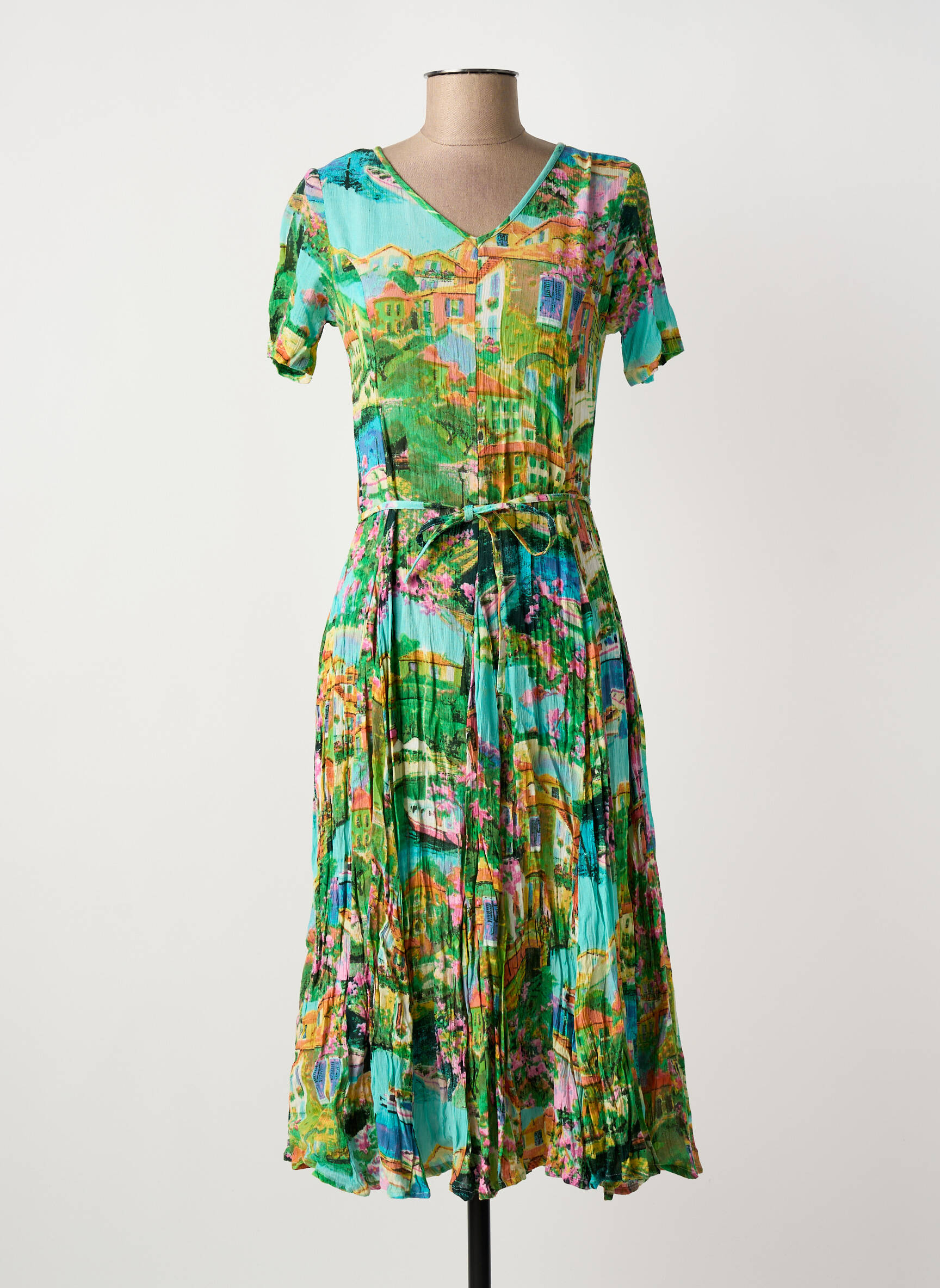 Rochie Midi Orientique Naturally Verde Mâneci Scurte
