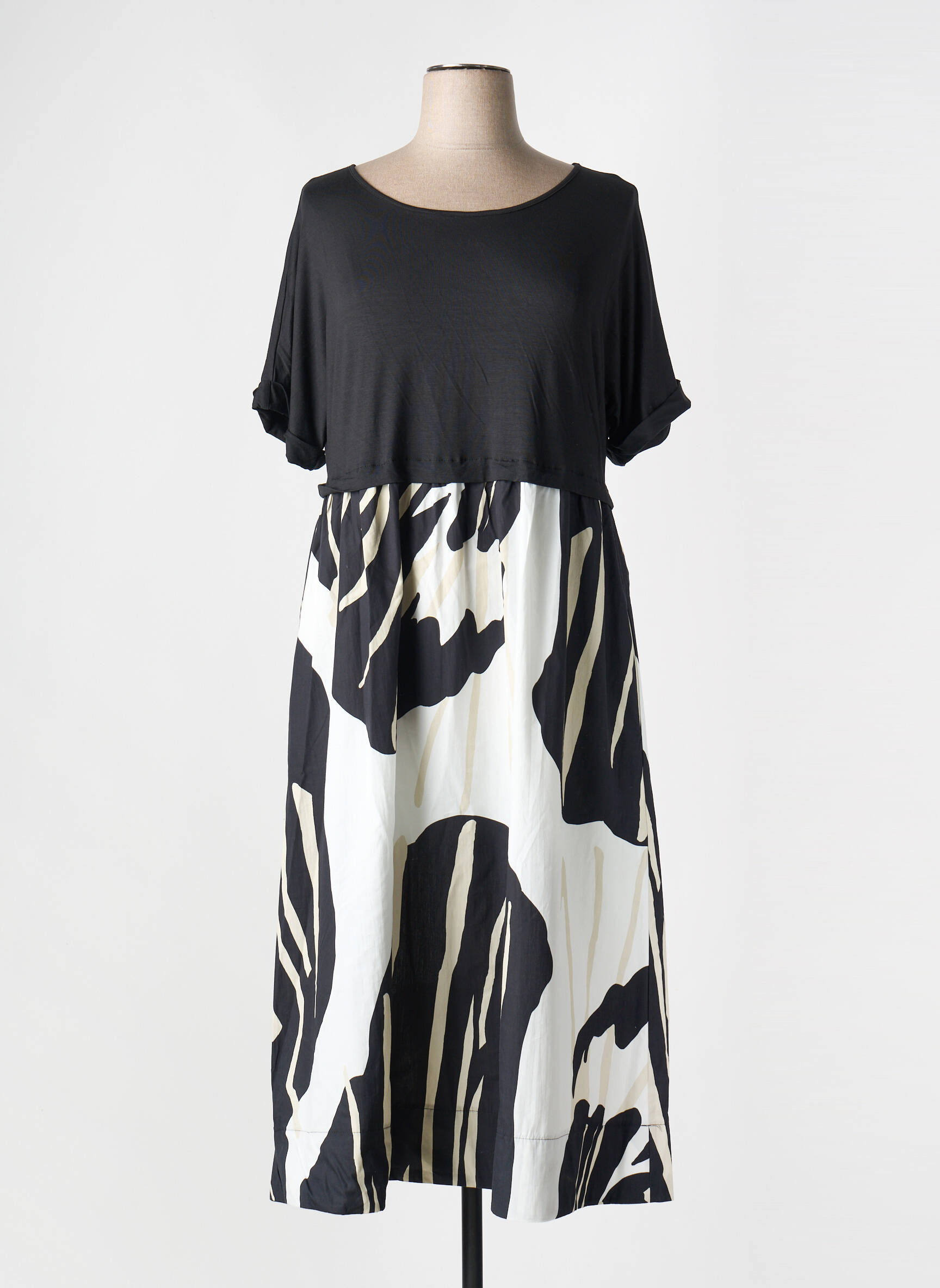 Rochie Midi Orto Botanico Negru Mâneci Scurte