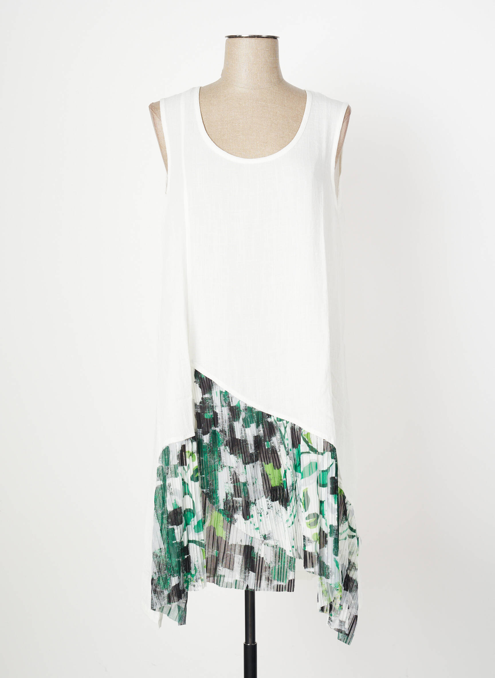 Rochie Midi Ozée Alb Fără Mâneci