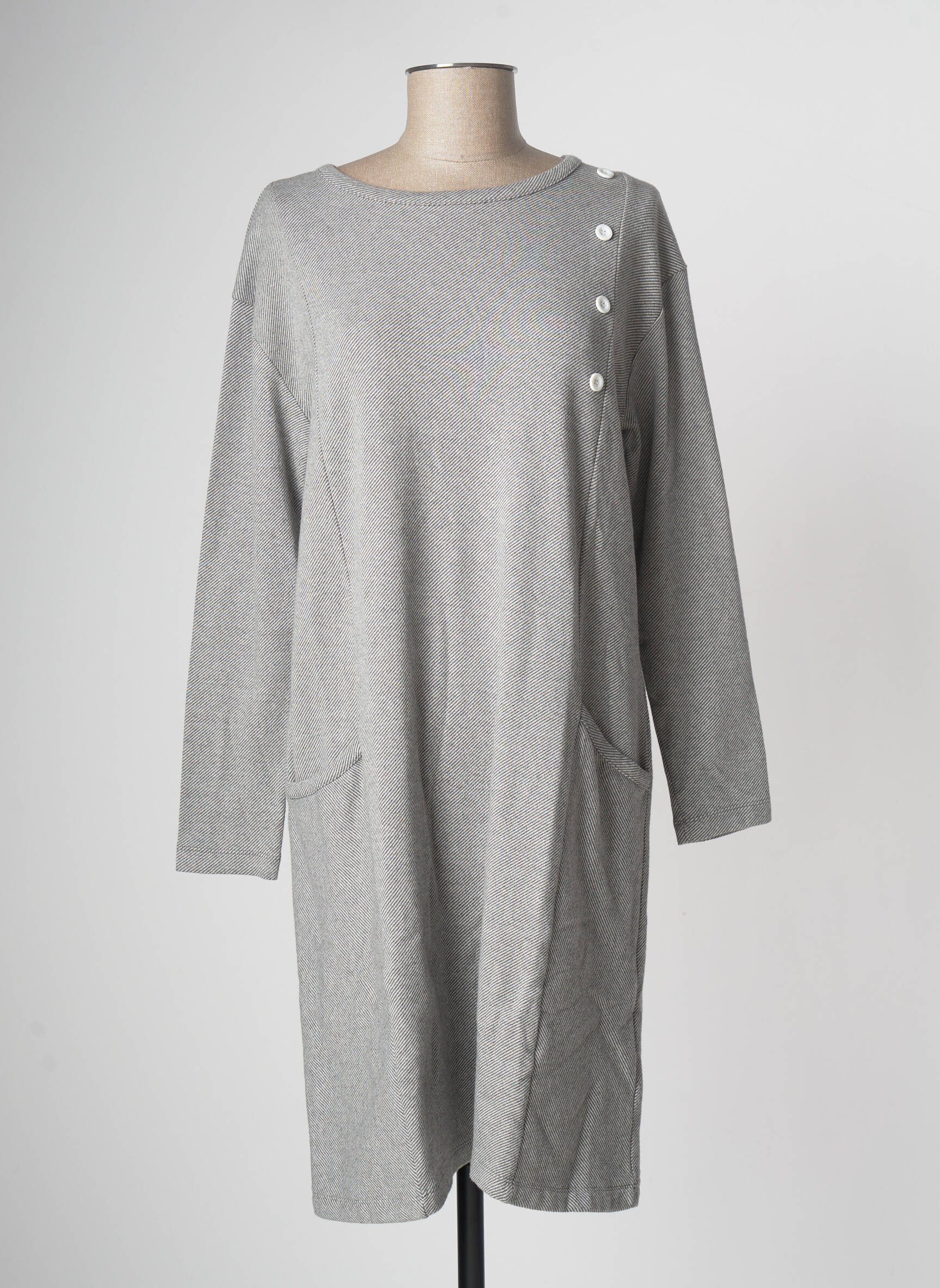 Rochie Midi Pan Gri Mâneci Lungi