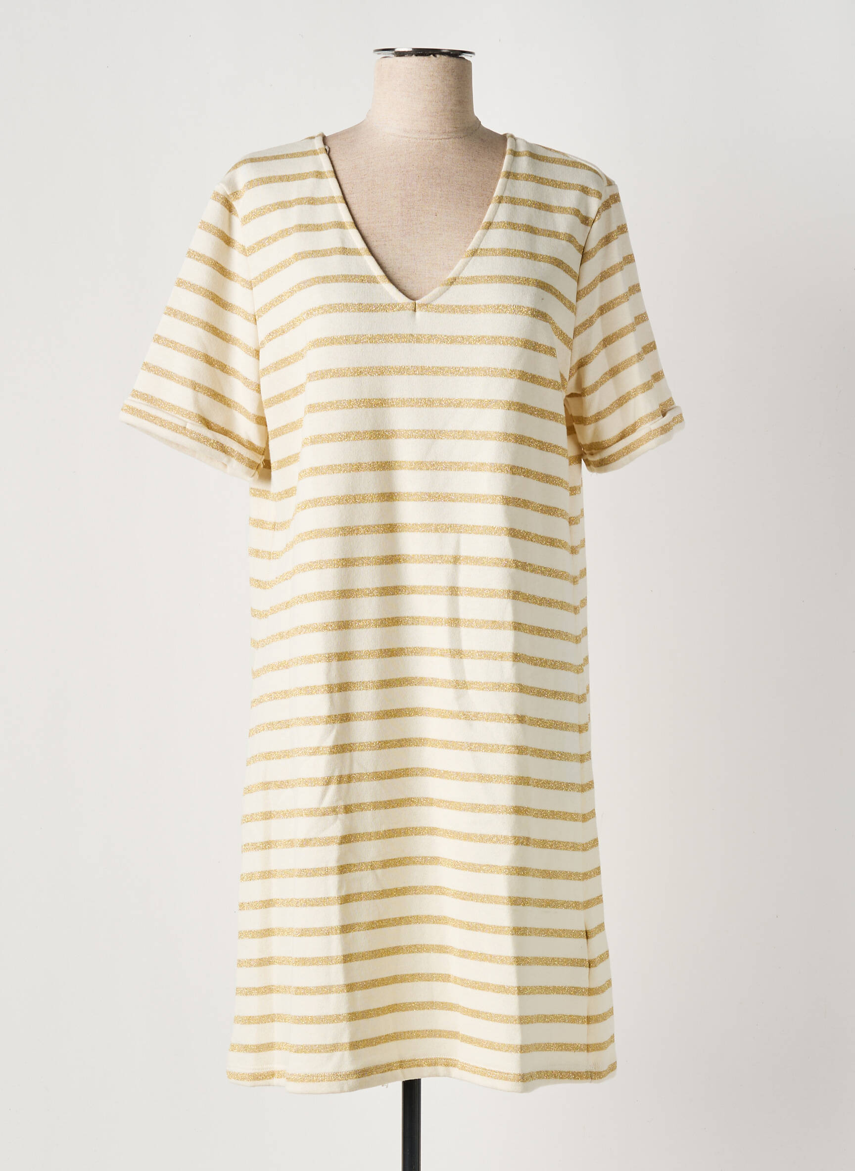 Rochie Midi Pieces Auriu Mâneci Scurte