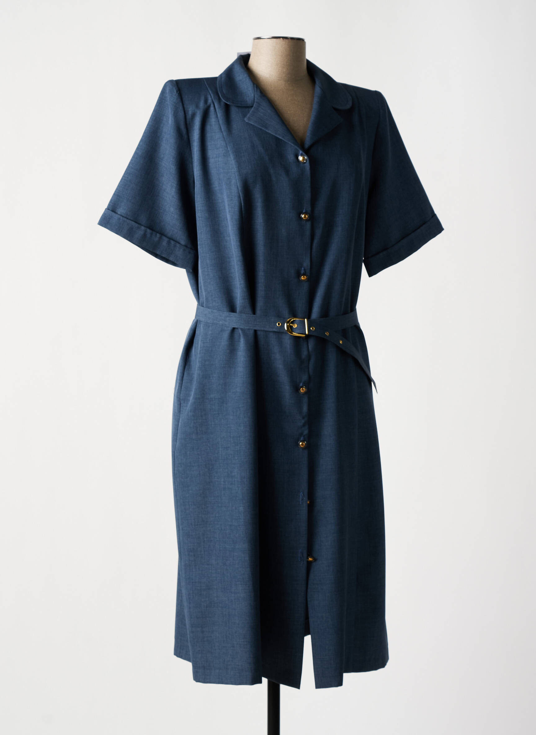Rochie Midi Plurielles Albastru Mâneci Scurte