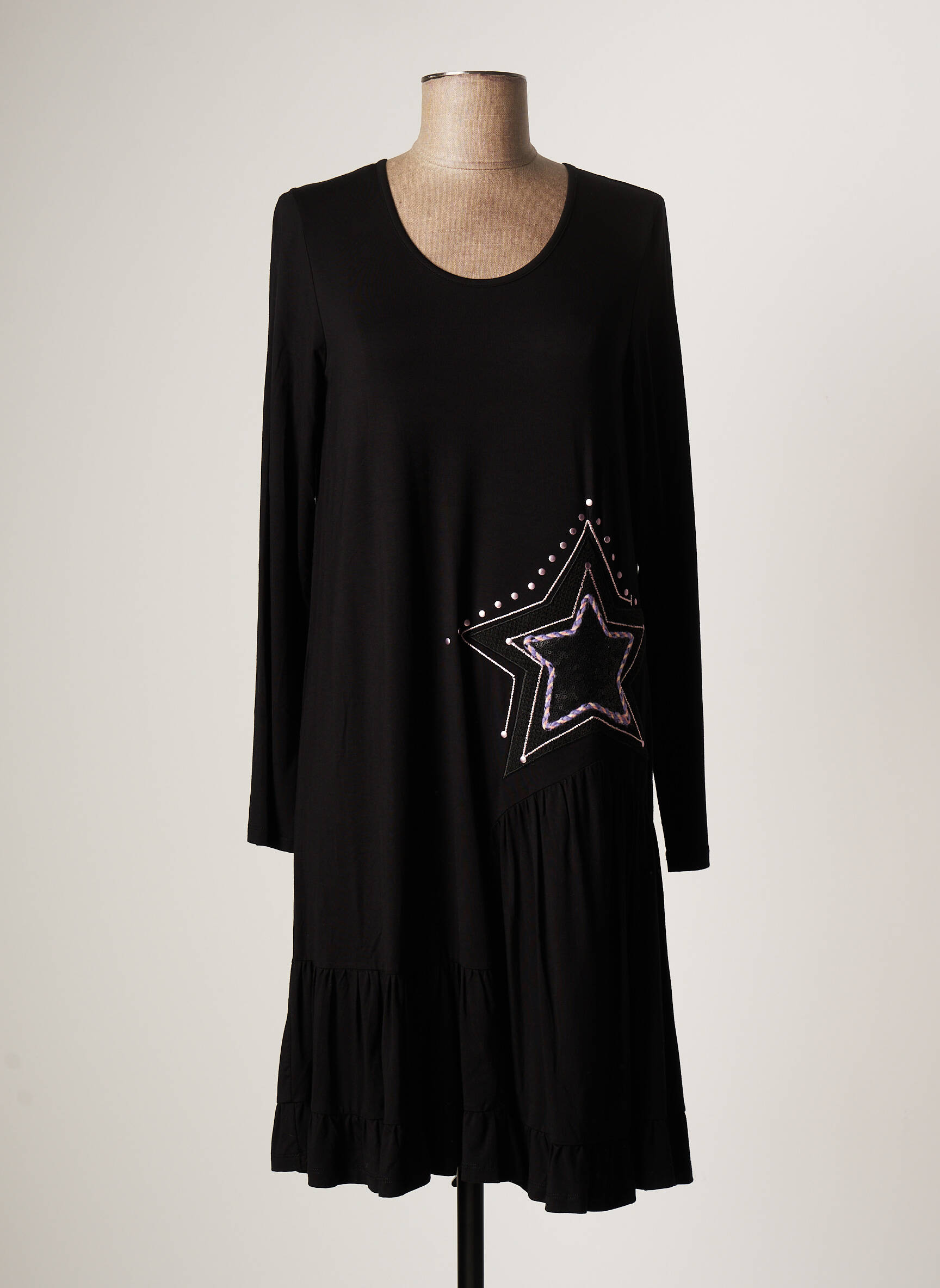 Rochie Midi Poupee Chic Negru Mâneci Lungi