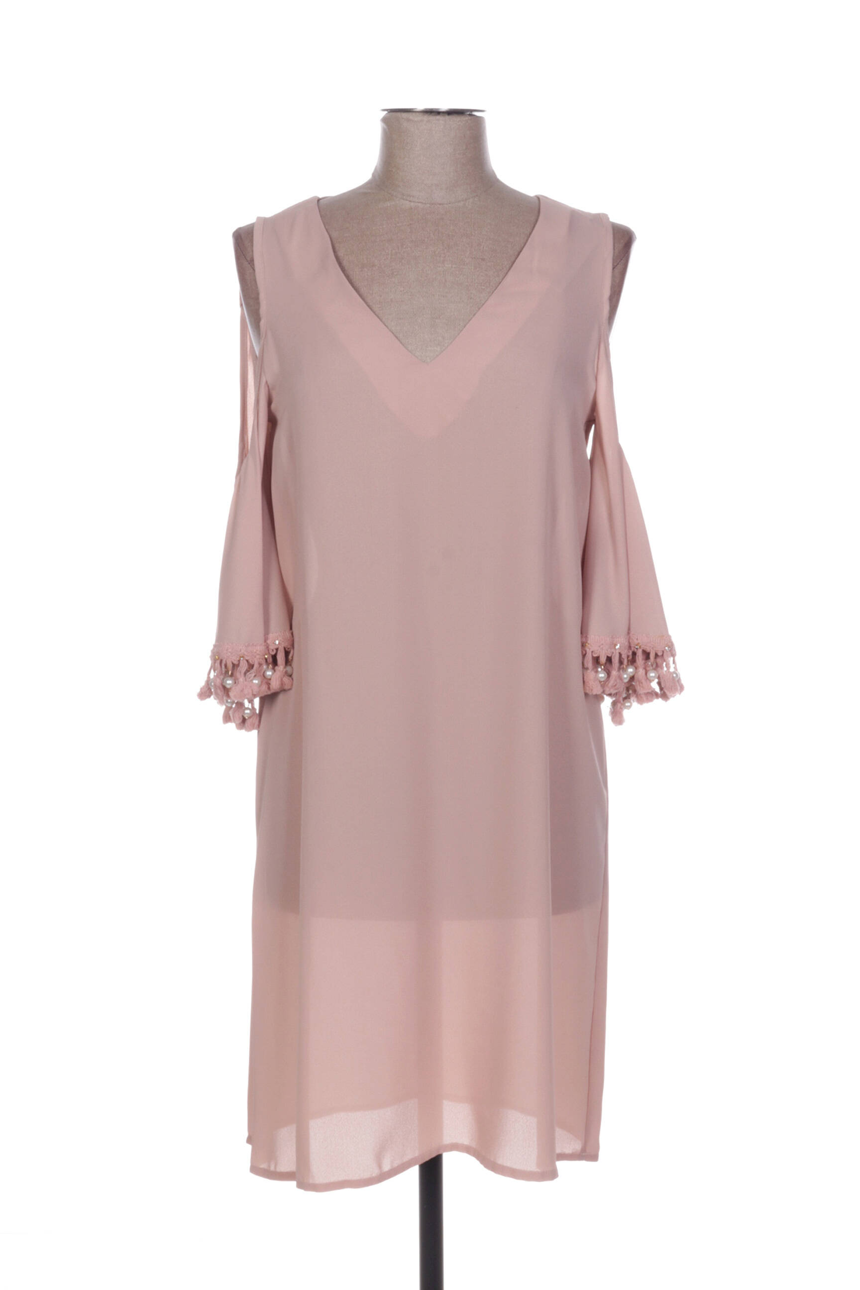 Rochie Midi Poupée De Soie Roz Mâneci Scurte
