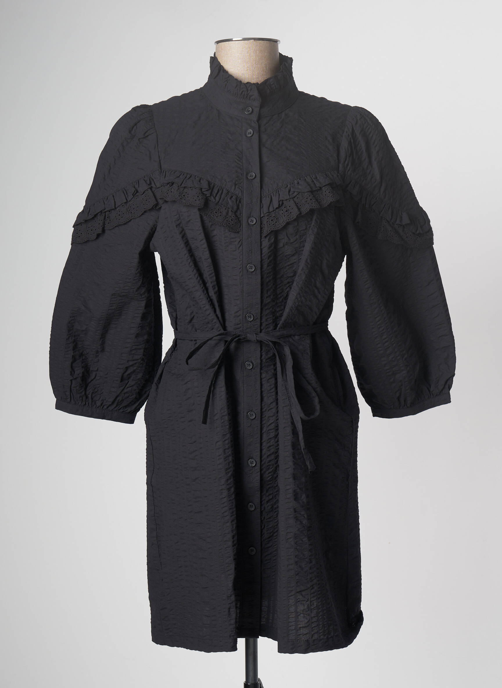 Rochie Midi Pulz Jeans Negru Mâneci Lungi