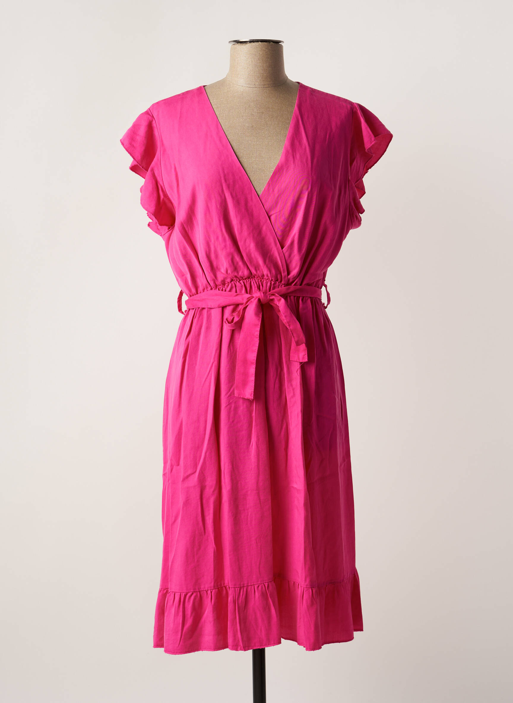 Rochie Midi Quatre Vingt Jours Roz Mâneci Scurte
