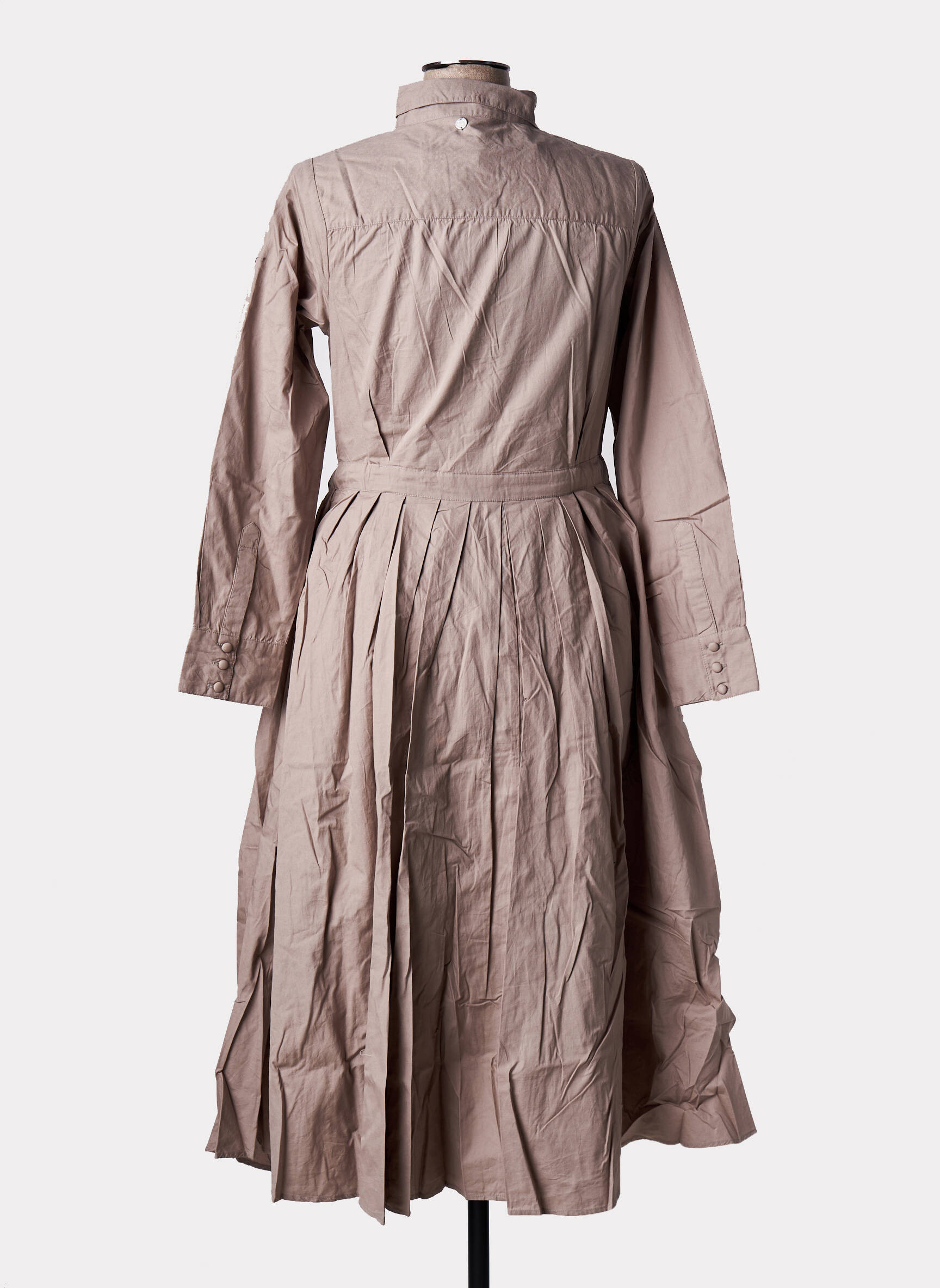Rochie Midi Rhum Raisin Bej Mâneci Lungi