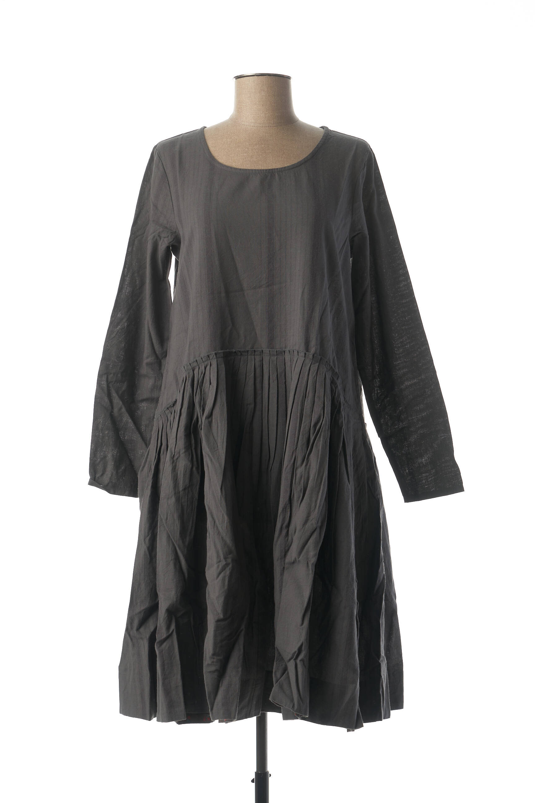 Rochie Midi Rhum Raisin Gri Mâneci Lungi
