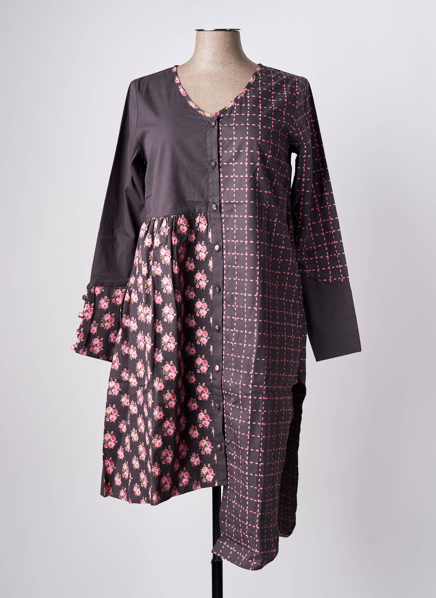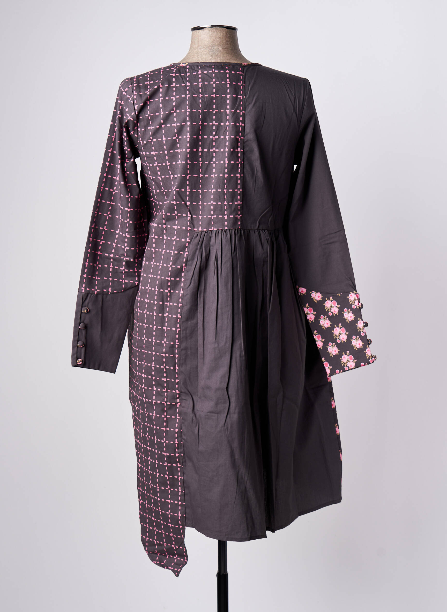 Rochie Midi Rhum Raisin Gri Mâneci Lungi