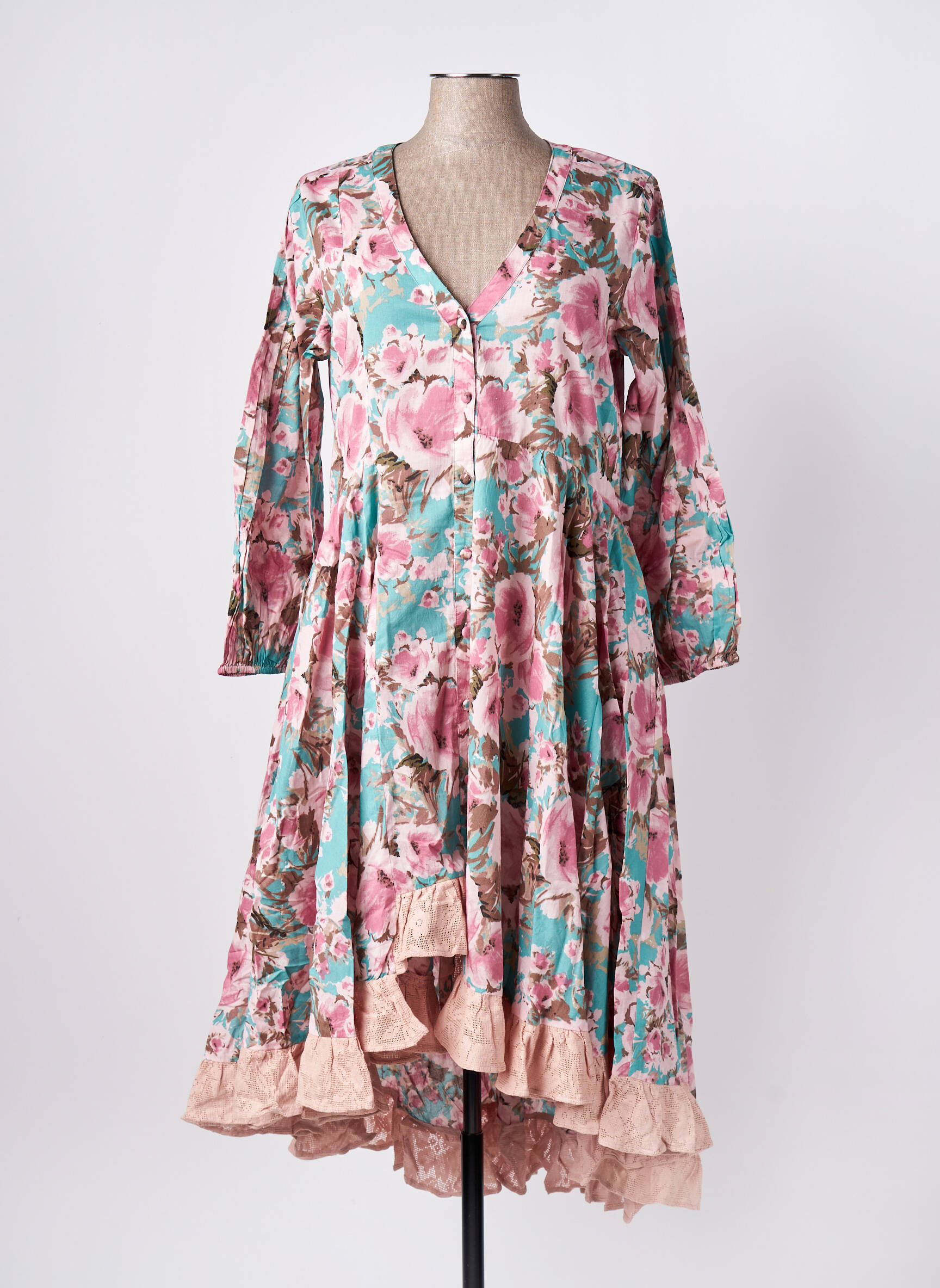 Rochie Midi Rhum Raisin Roz Mâneci Lungi