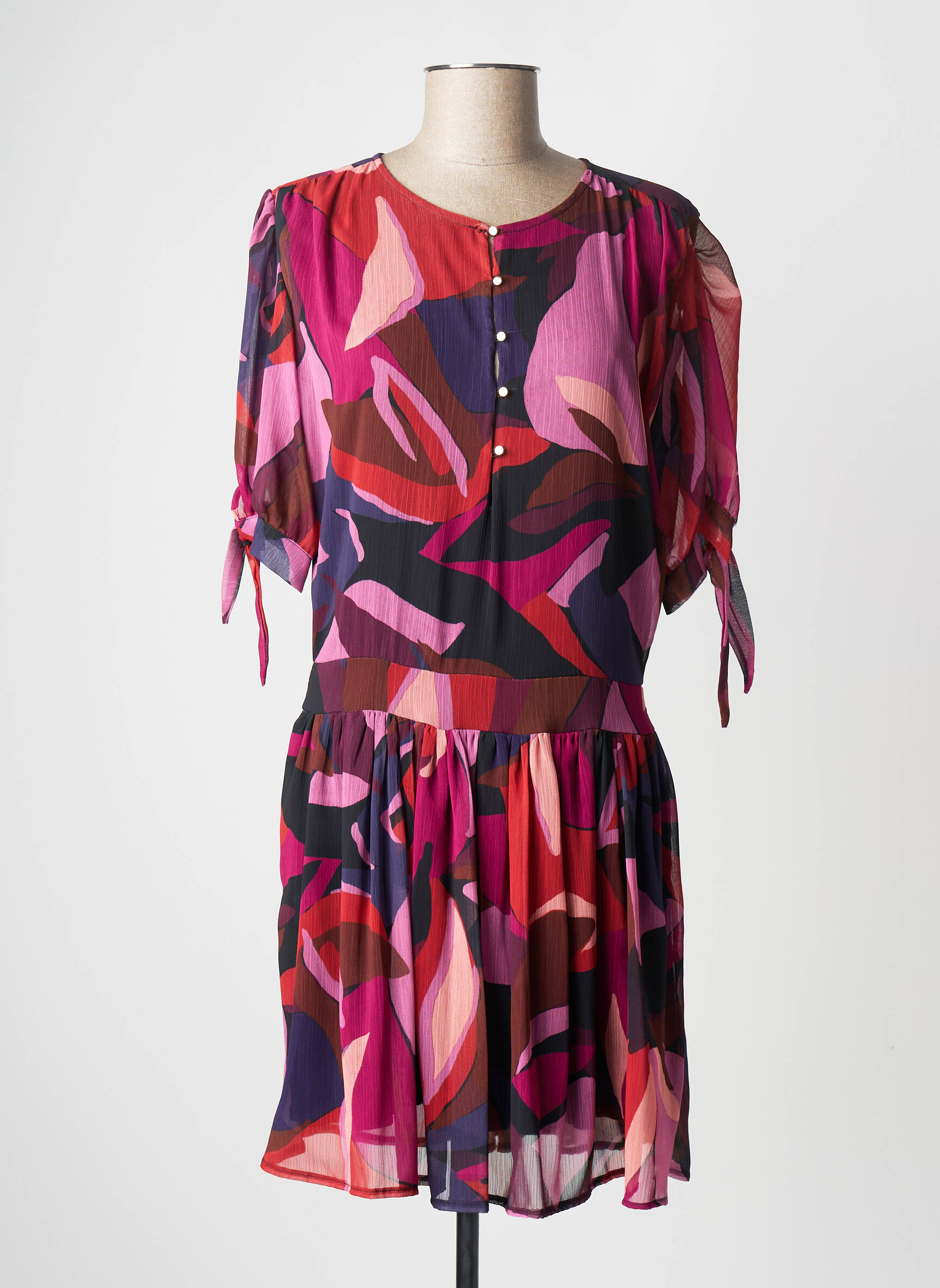 Rochie Midi Rue Des Abbesses Roșu Mâneci Scurte