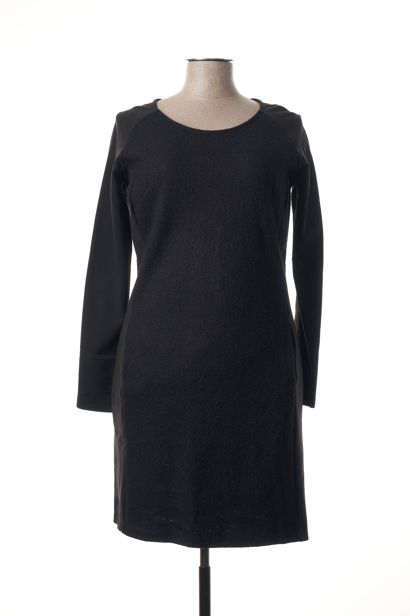 Rochie Midi Sandwich Negru Mâneci Lungi