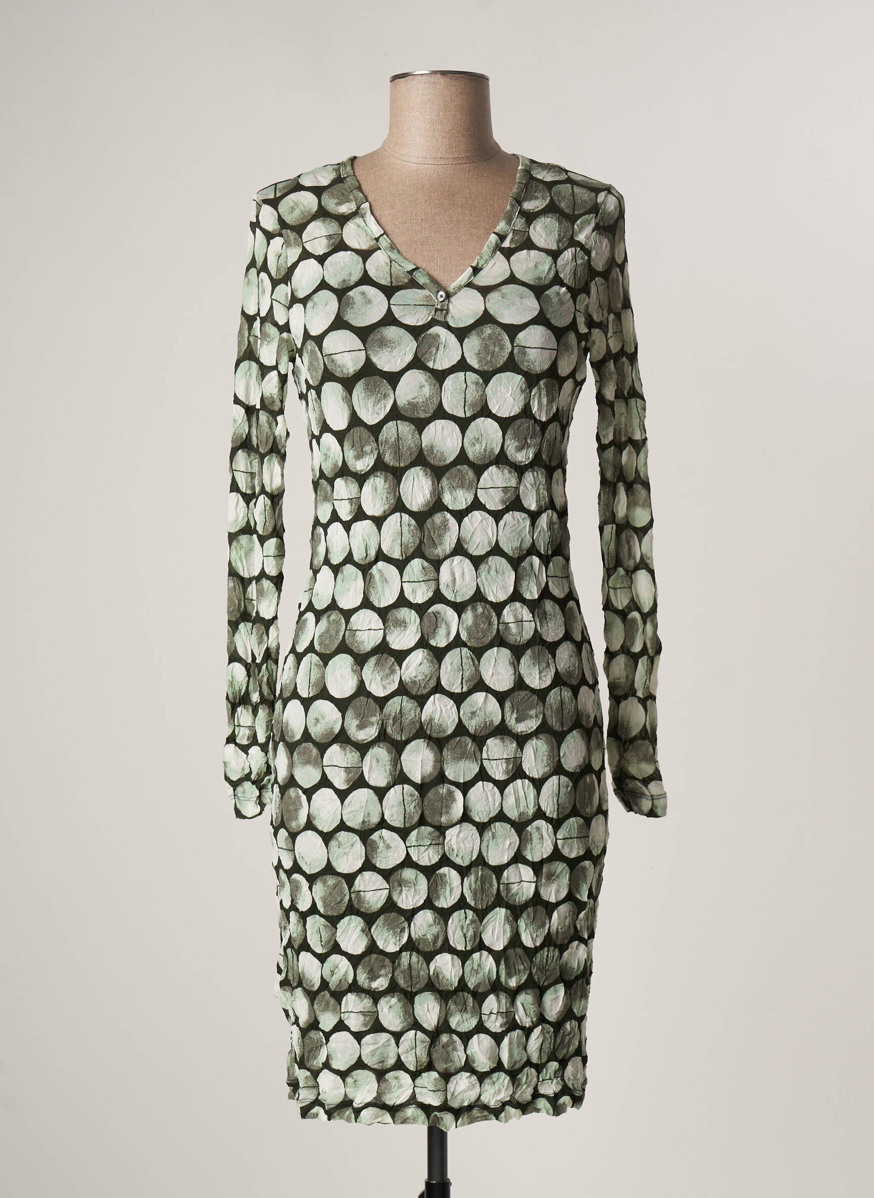 Rochie Midi Sandwich Verde Mâneci Lungi