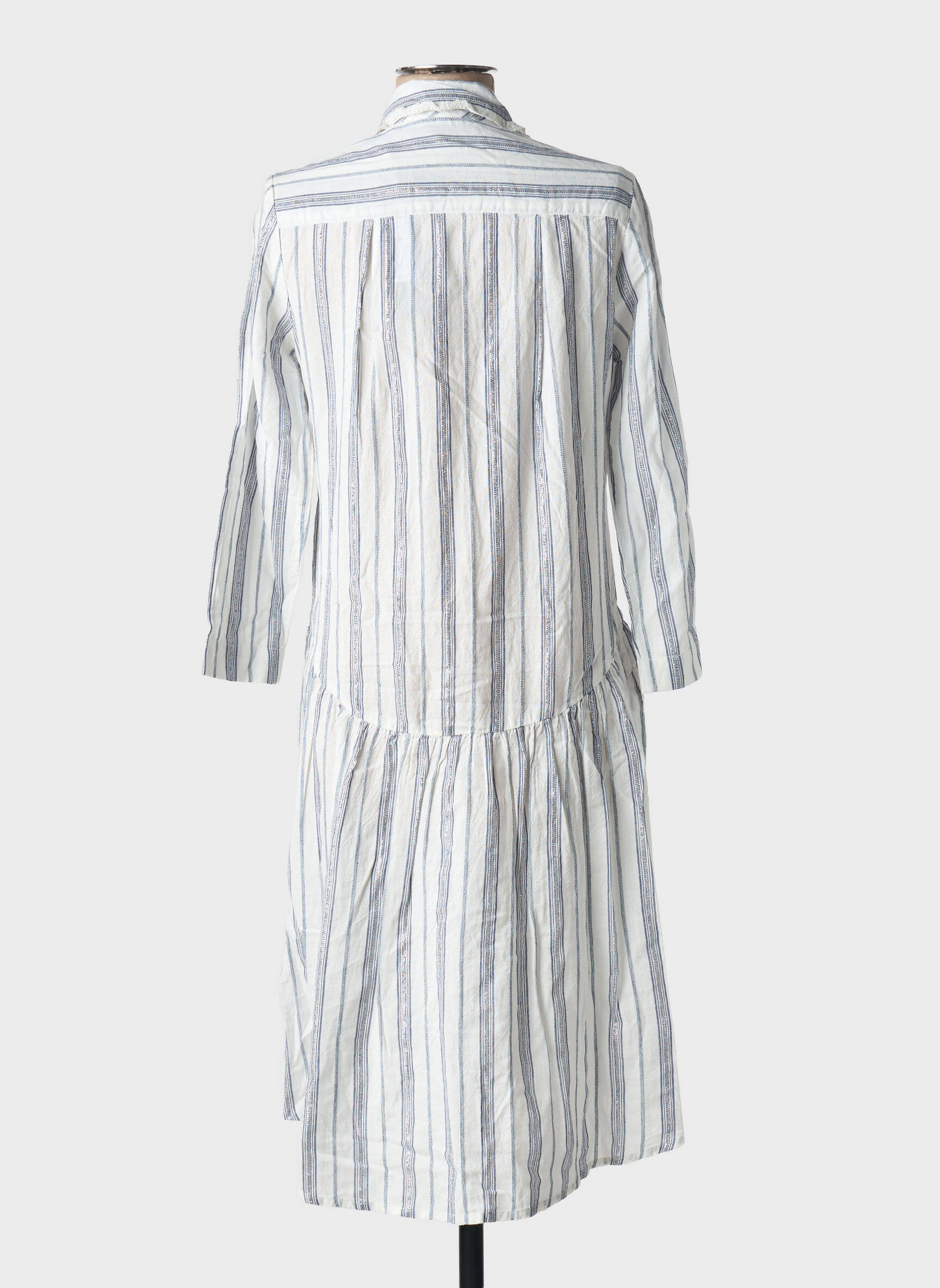 Rochie Midi School Rag Alb Mâneci Lungi