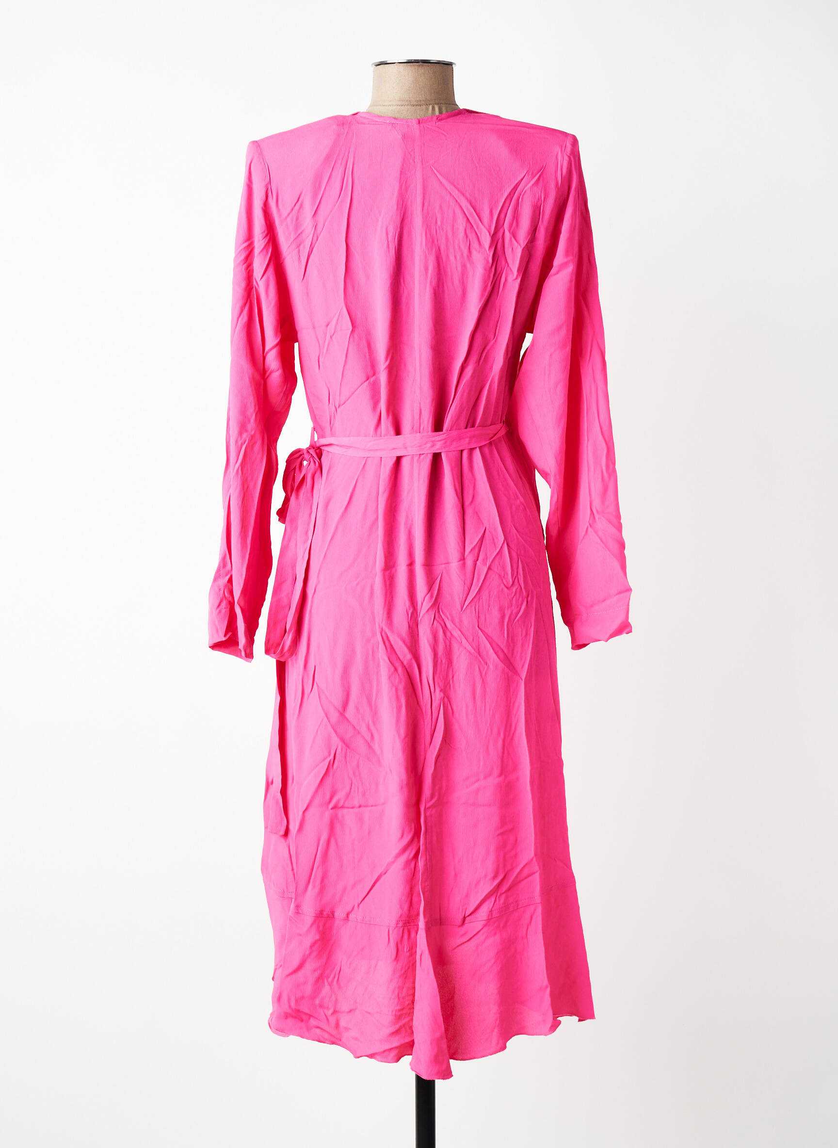 Rochie Midi Seventy Roz Mâneci Lungi