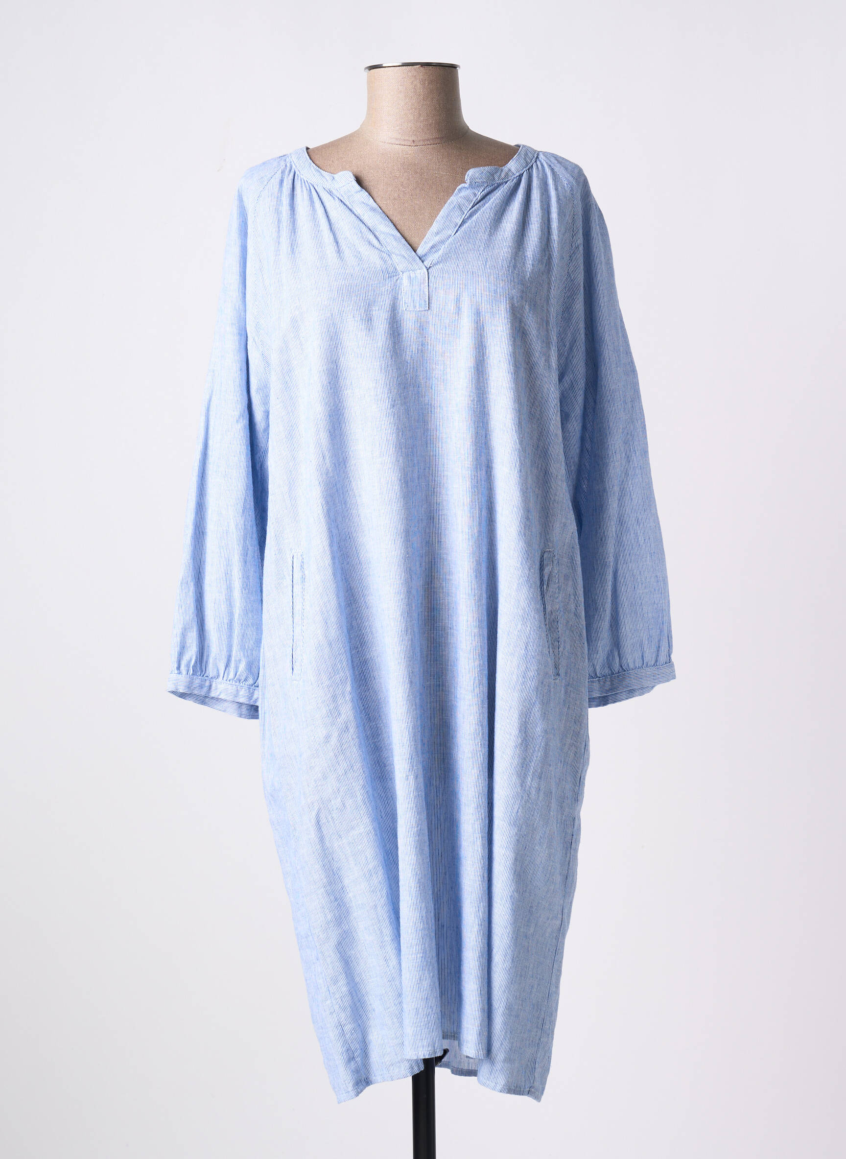 Rochie Midi Signe Nature Albastru Mâneci Lungi