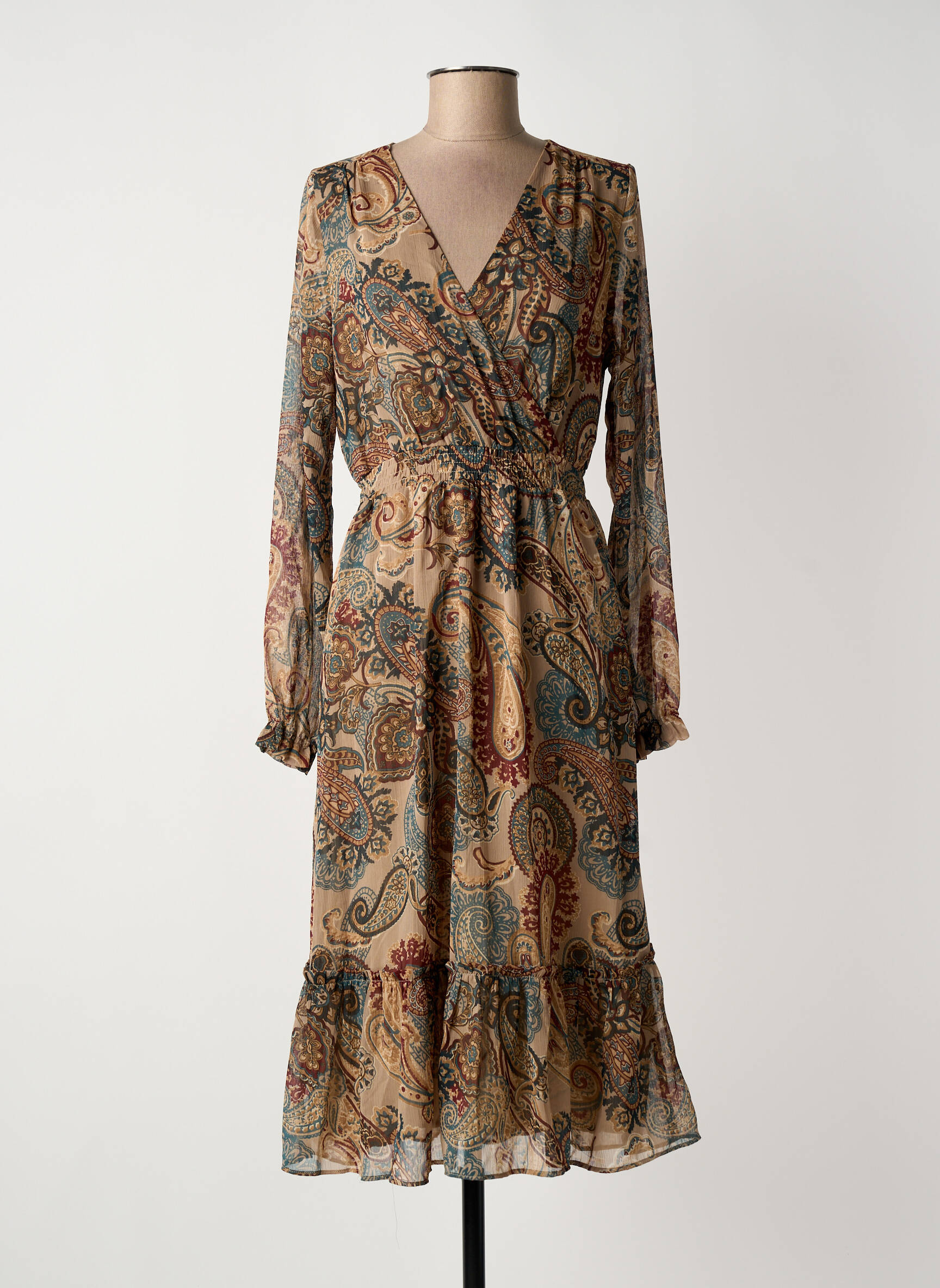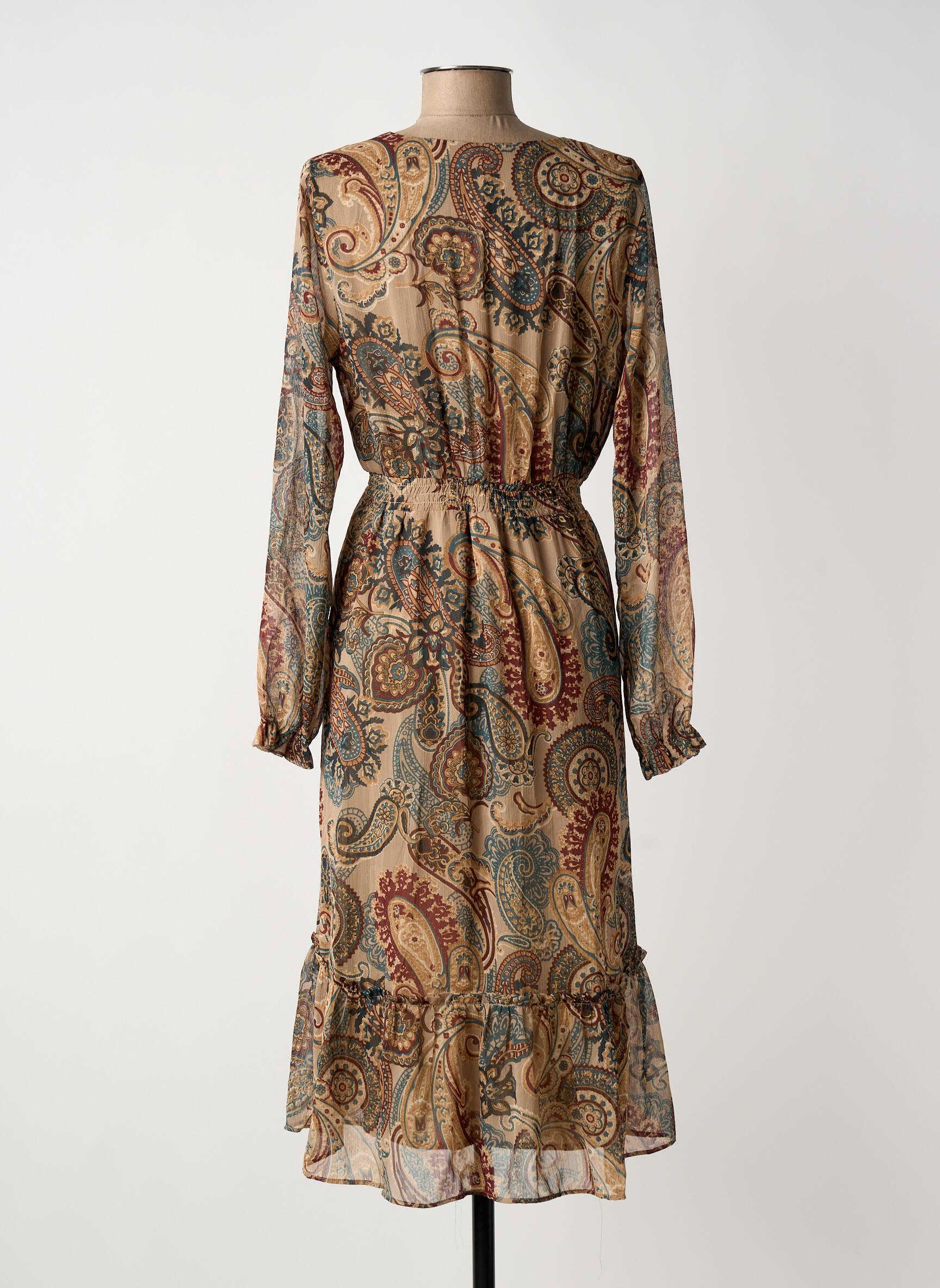 Rochie Midi Sud Express Bej Mâneci Lungi