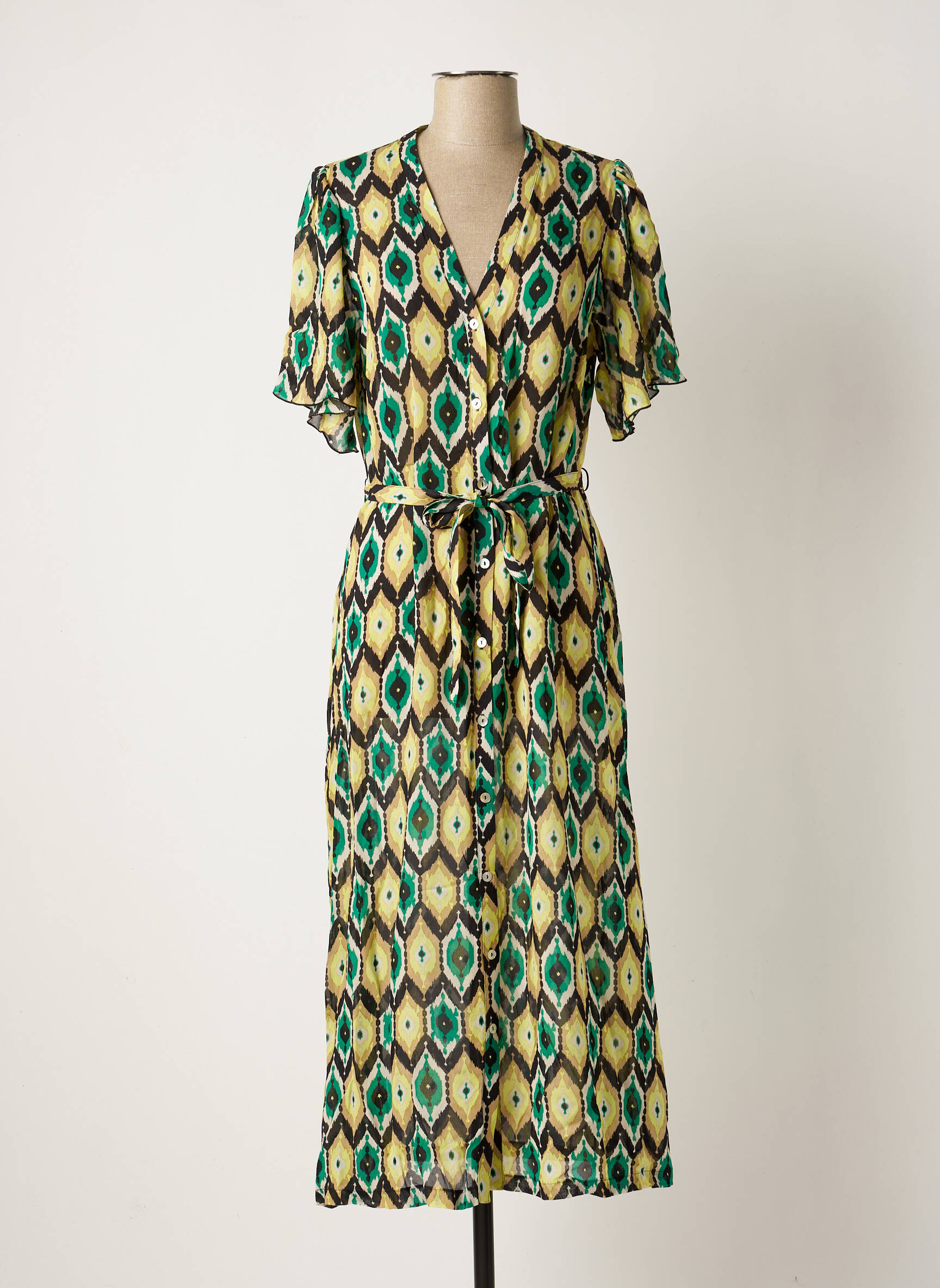 Rochie Midi Summum Verde Mâneci Scurte