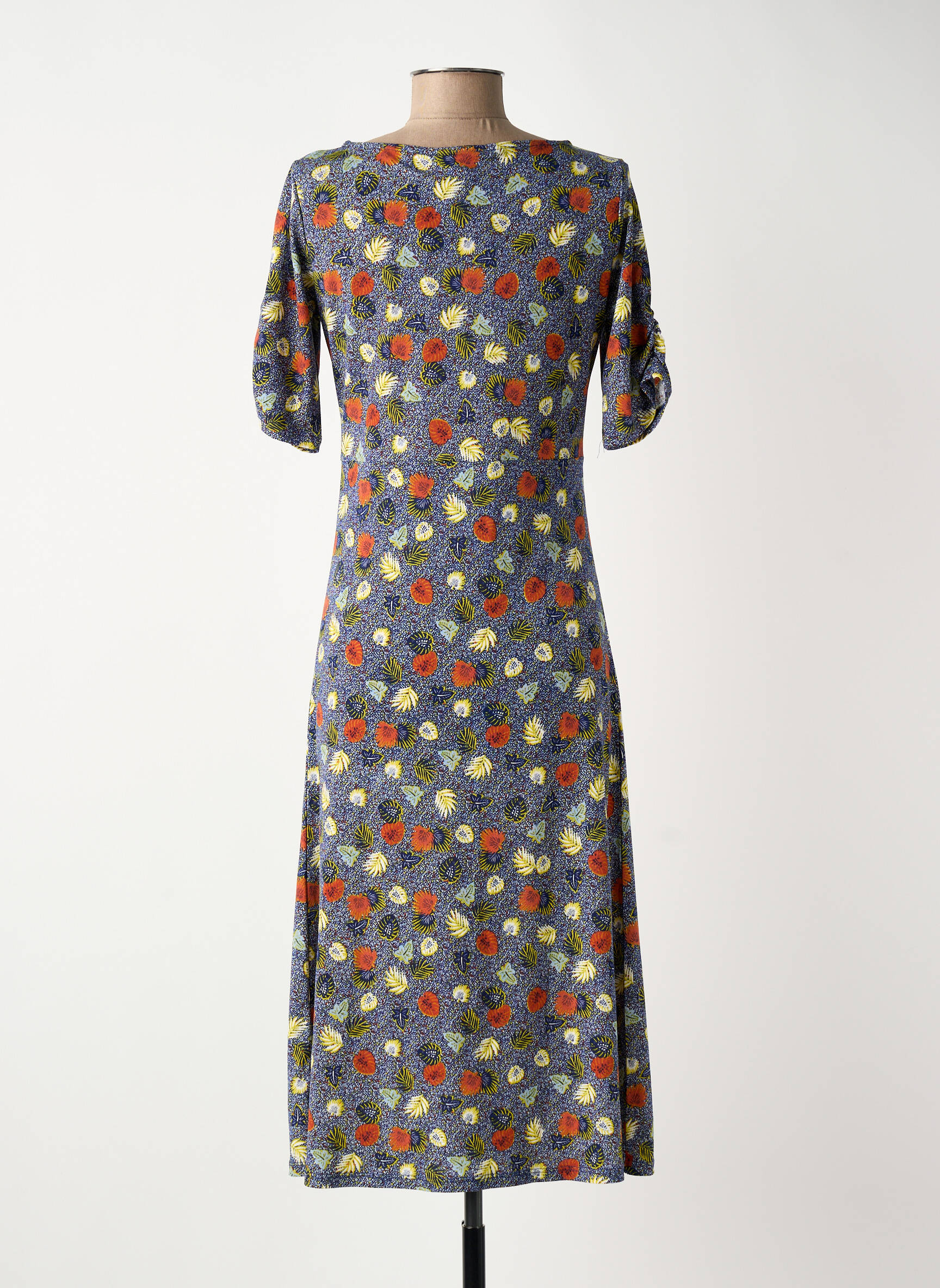 Rochie Midi Surkana Albastru Mâneci Scurte