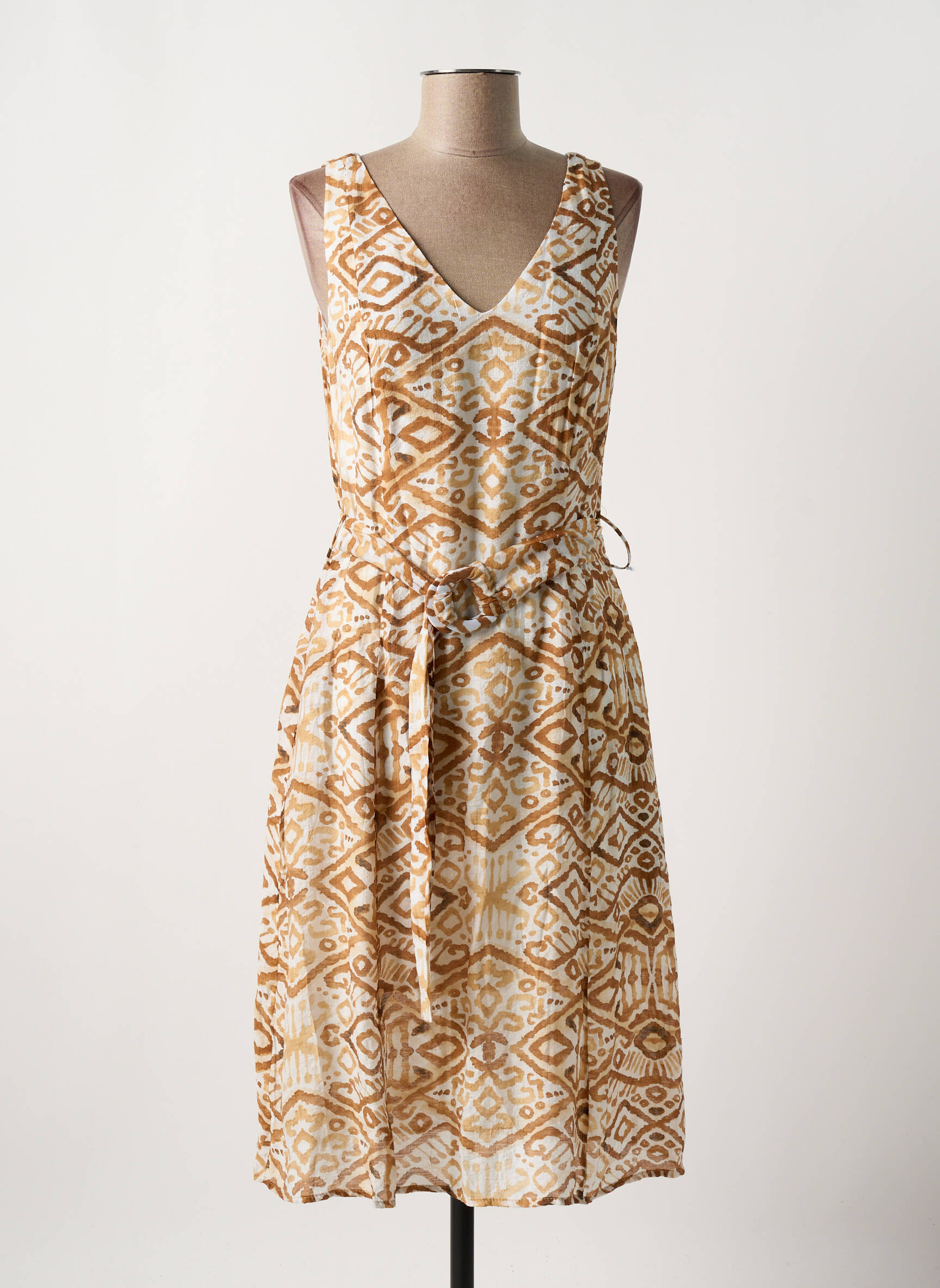 Rochie Midi Surkana Bej Fără Mâneci