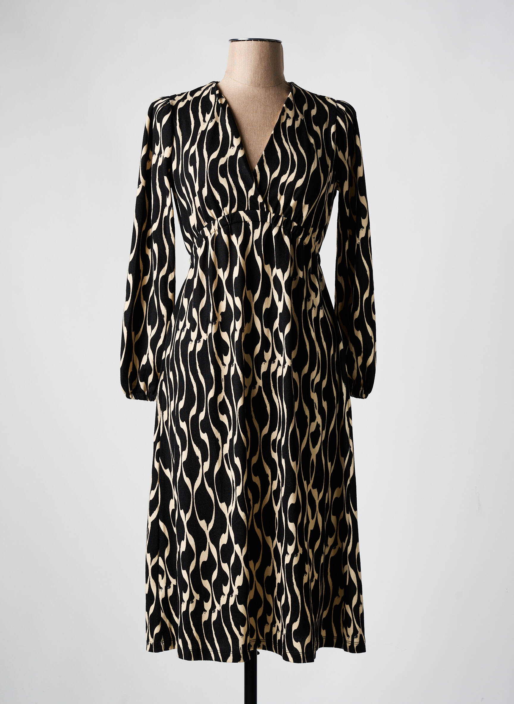 Rochie Midi Surkana Negru Mâneci Lungi