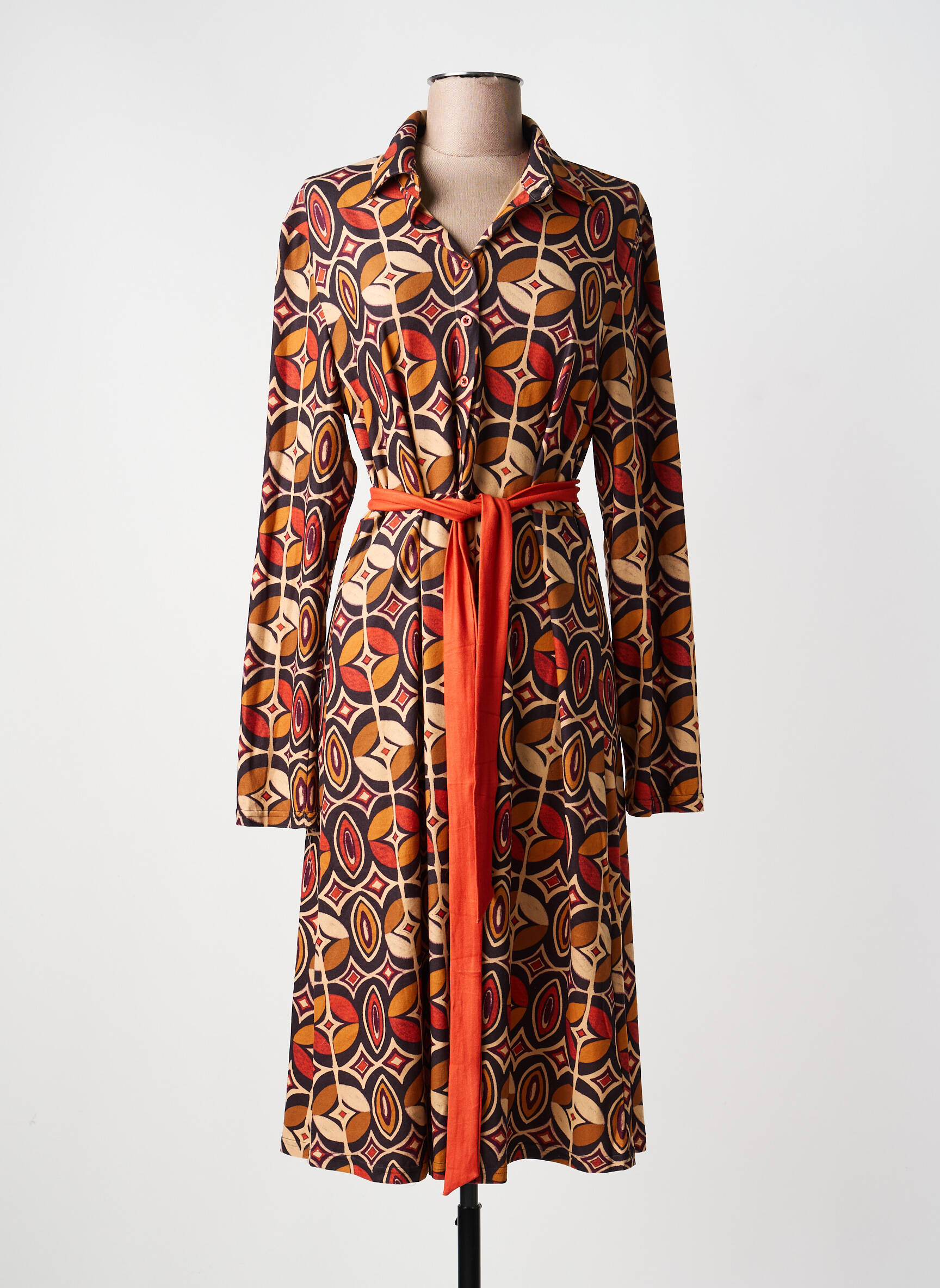Rochie Midi Sweet Miss Portocaliu Mâneci Lungi