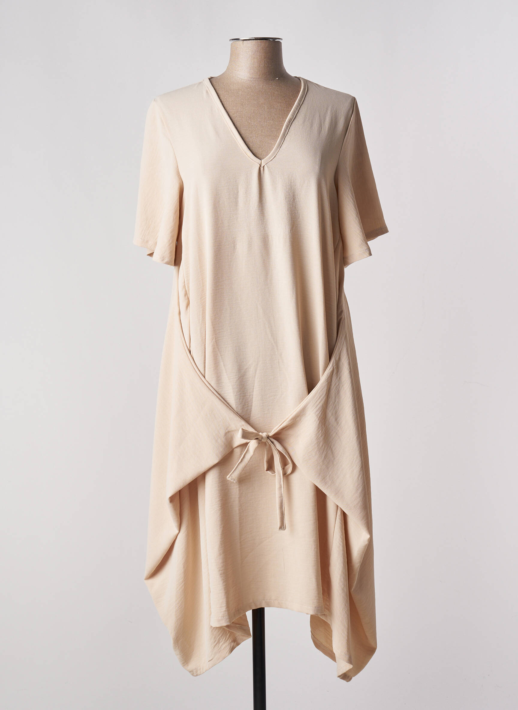 Rochie Midi Tendance Unique Bej Fără Mâneci