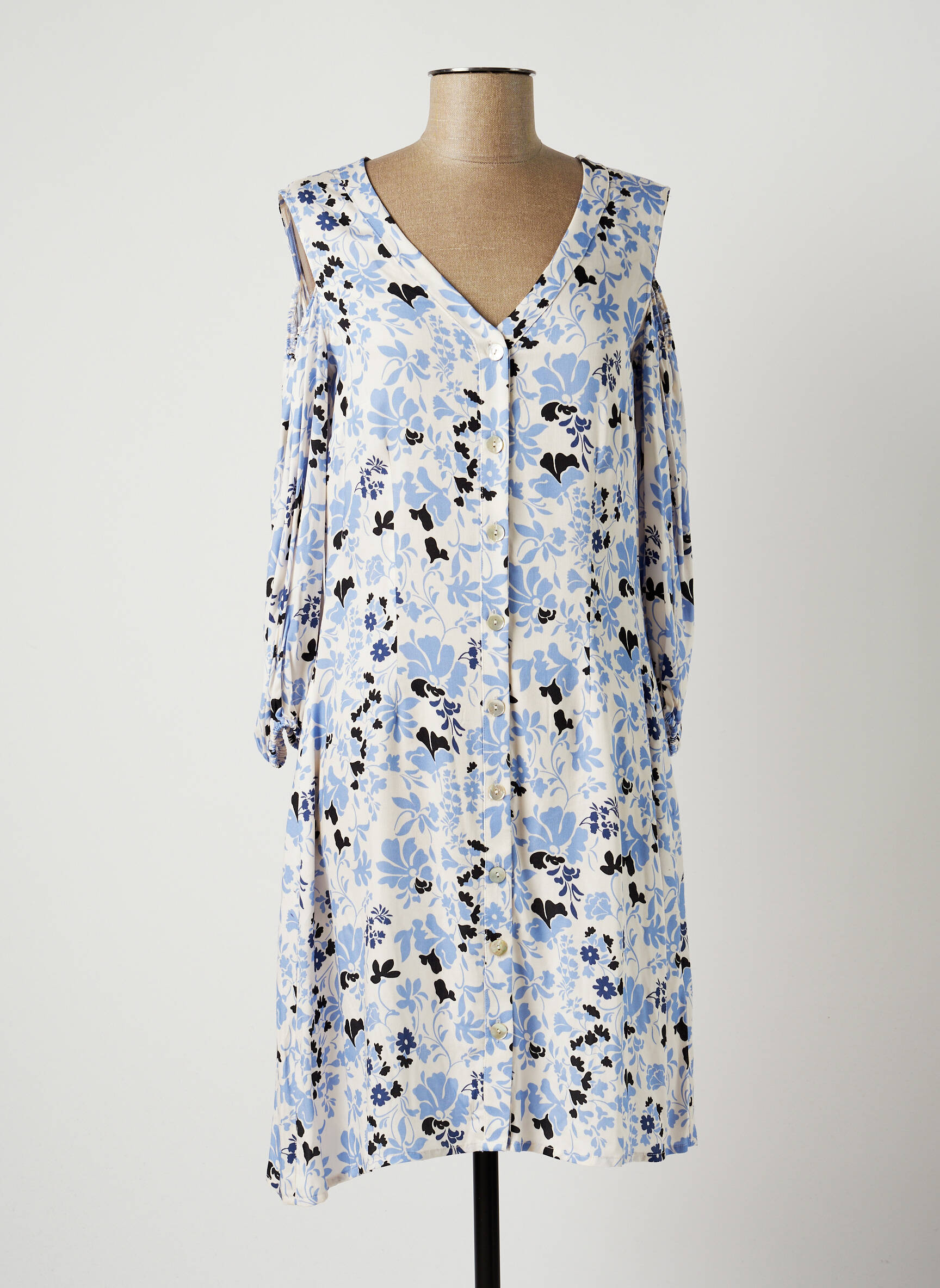 Rochie Midi Terre De Fées Albastru Mâneci Lungi