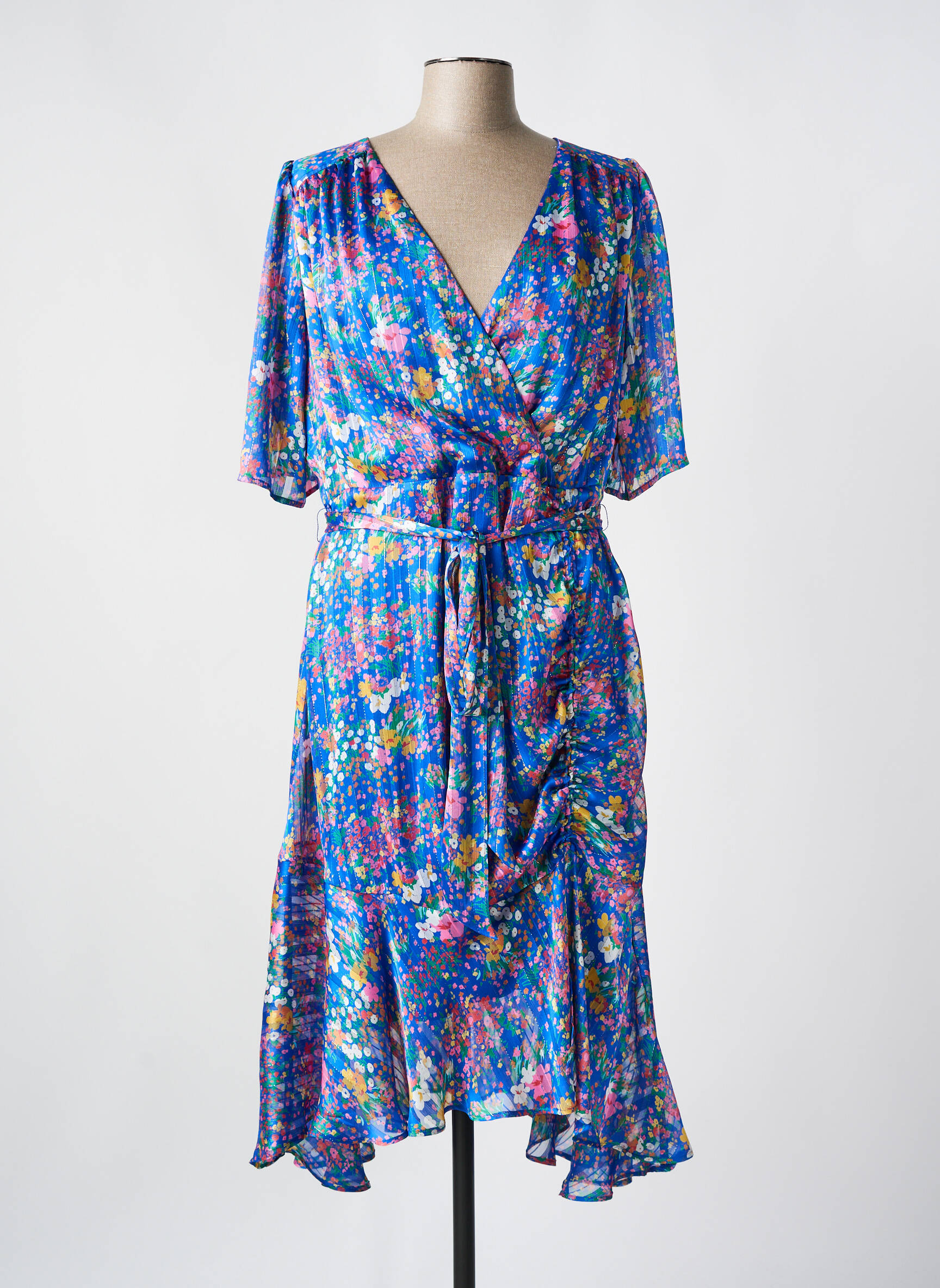 Rochie Midi Tia Albastru Mâneci Scurte