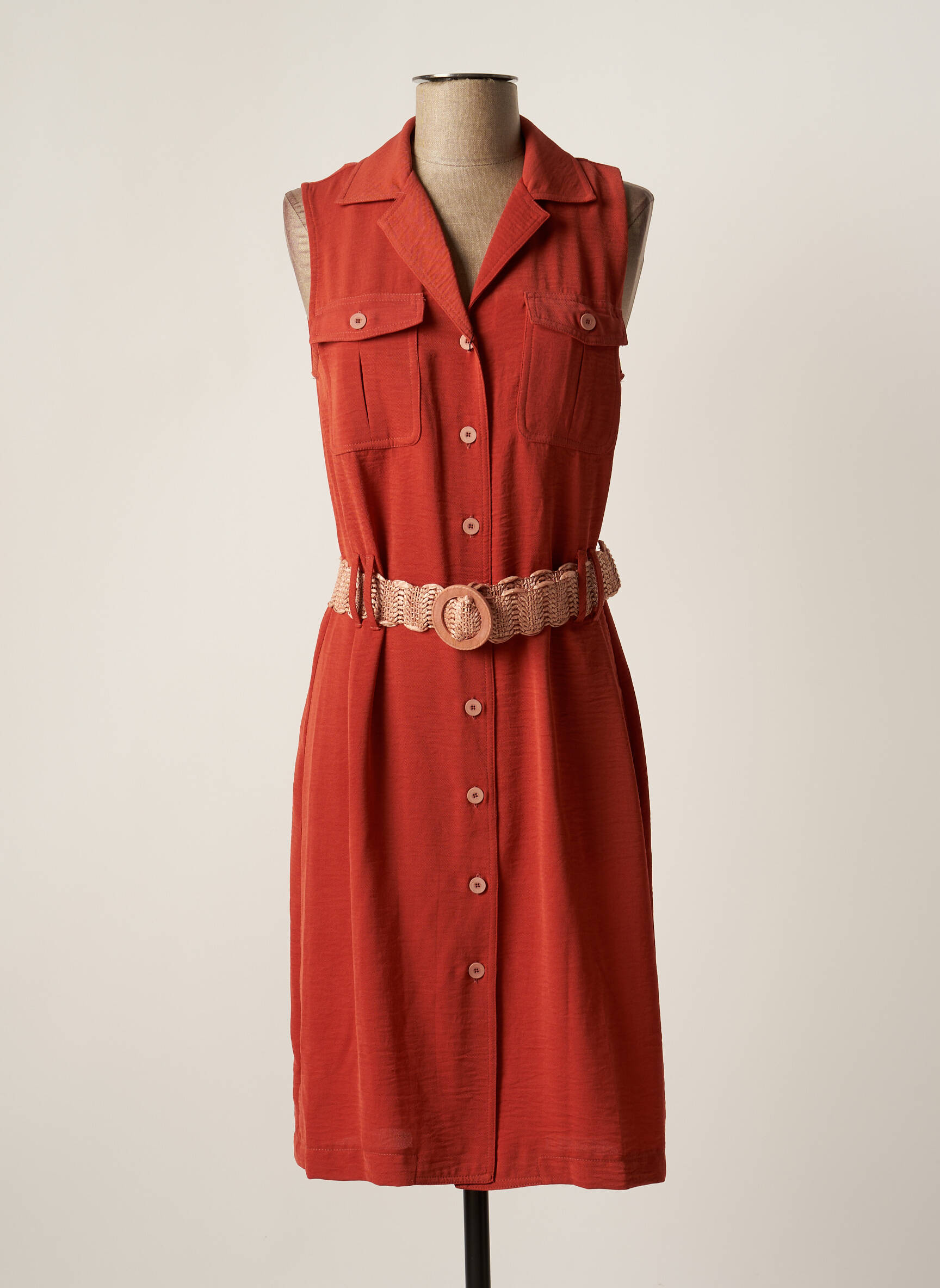 Rochie Midi Tinta Style Portocaliu Fără Mâneci