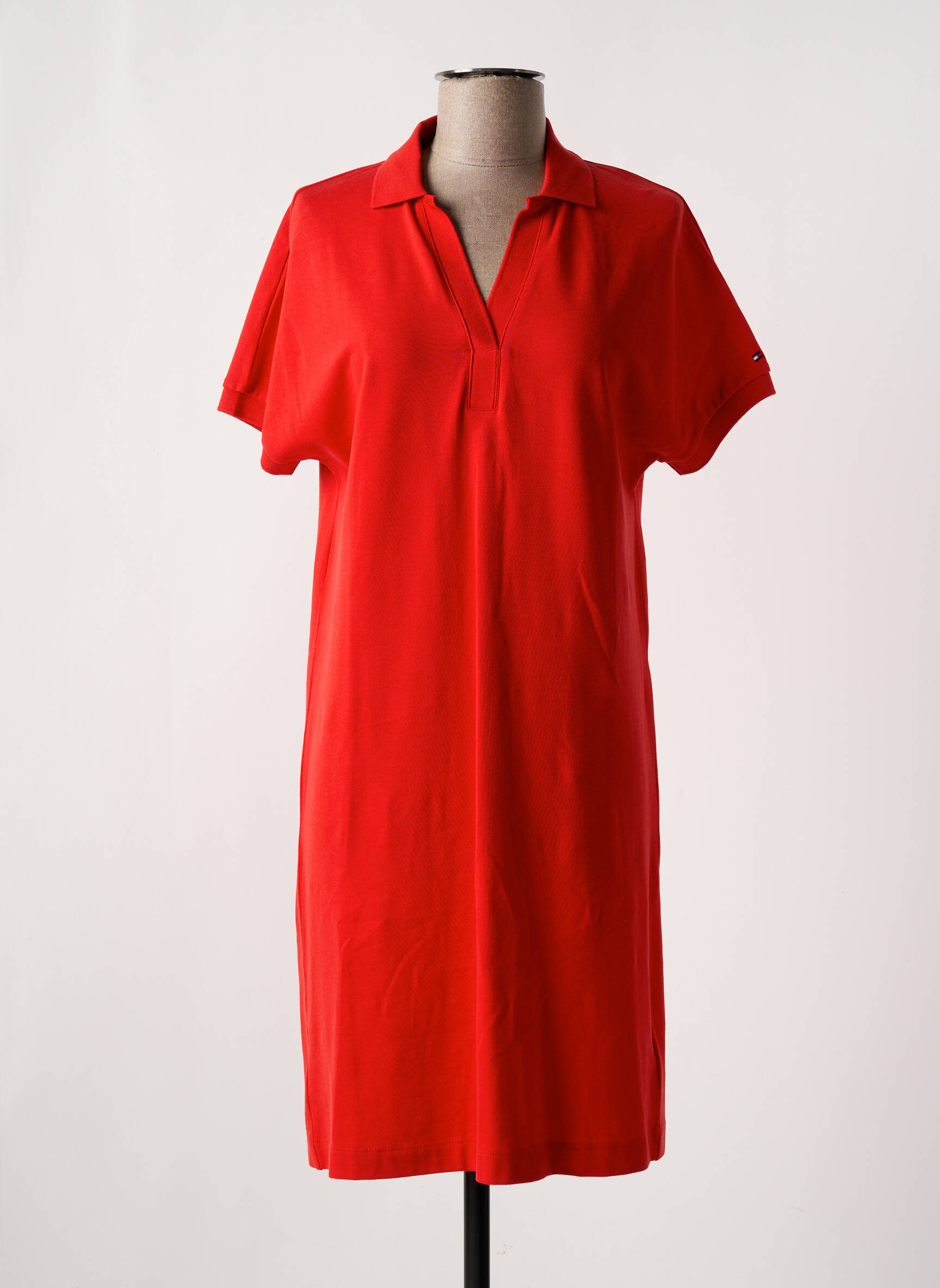 Rochie Midi Tommy Hilfiger Roșu Mâneci Scurte