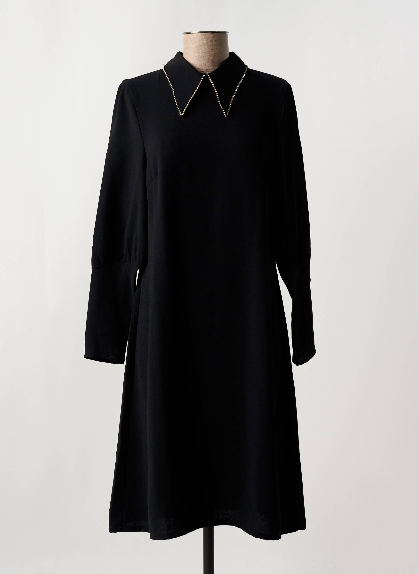 Rochie Midi Toupy Negru Mâneci Lungi