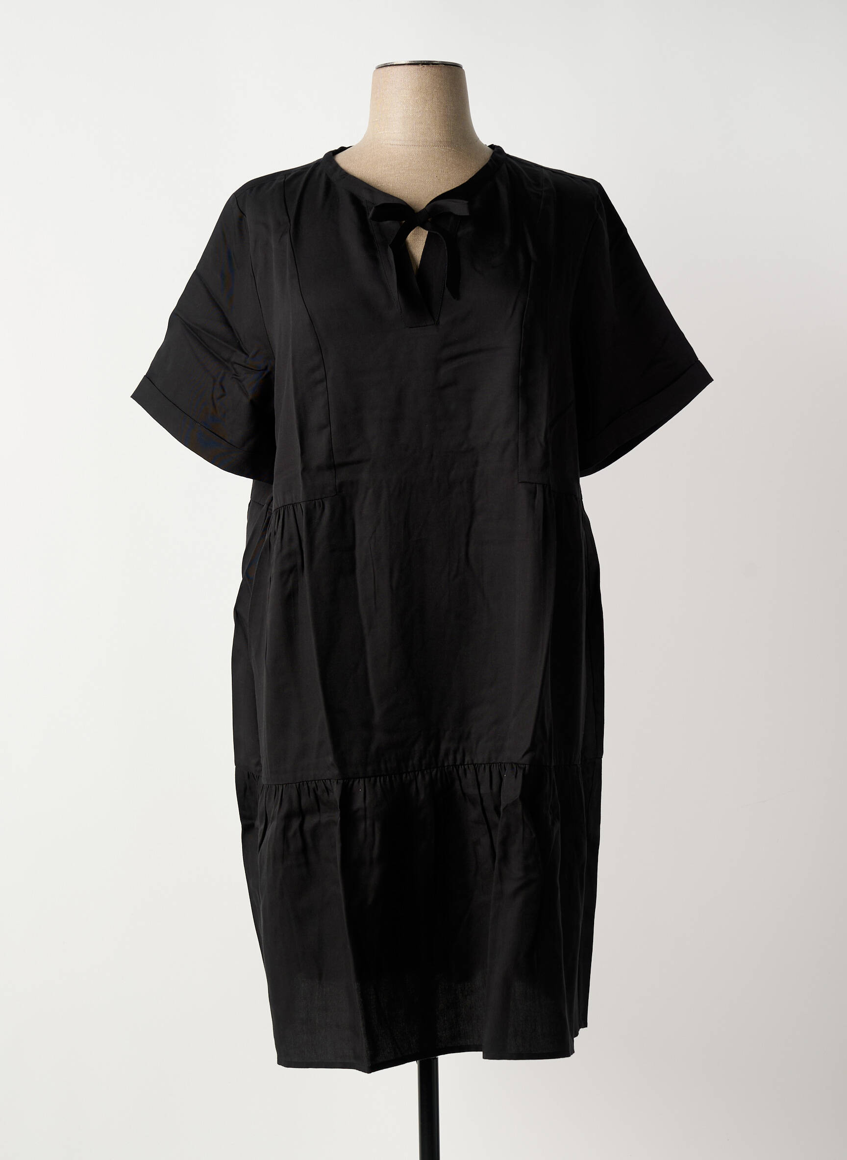 Rochie Midi Triangle Negru Mâneci Scurte