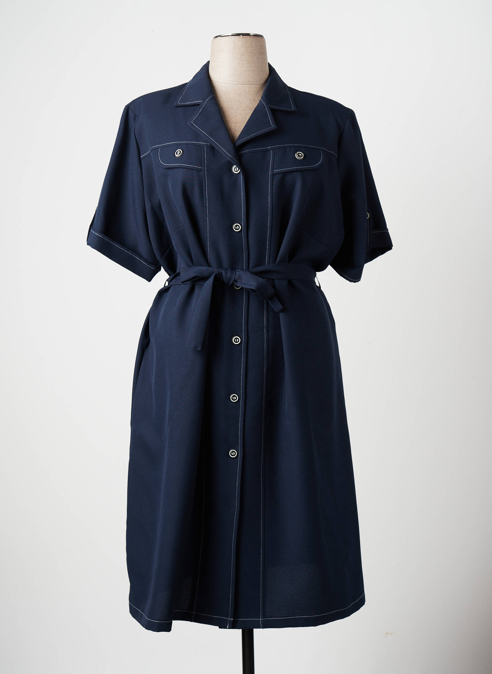 Rochie Midi Valmode Albastru Mâneci Scurte