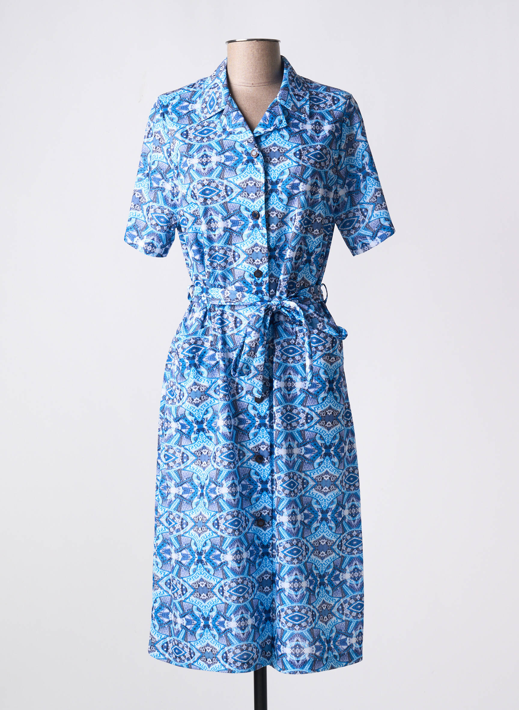 Rochie Midi Valmode Albastru Mâneci Scurte