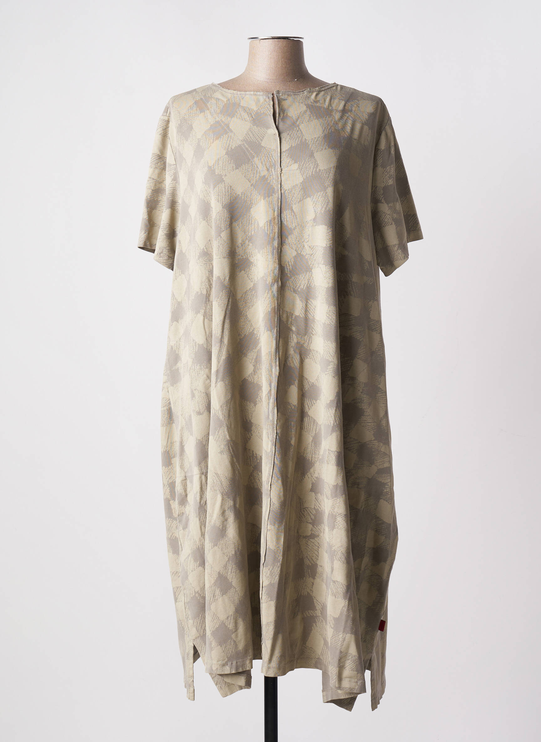 Rochie Midi Vetono Bej Mâneci Scurte