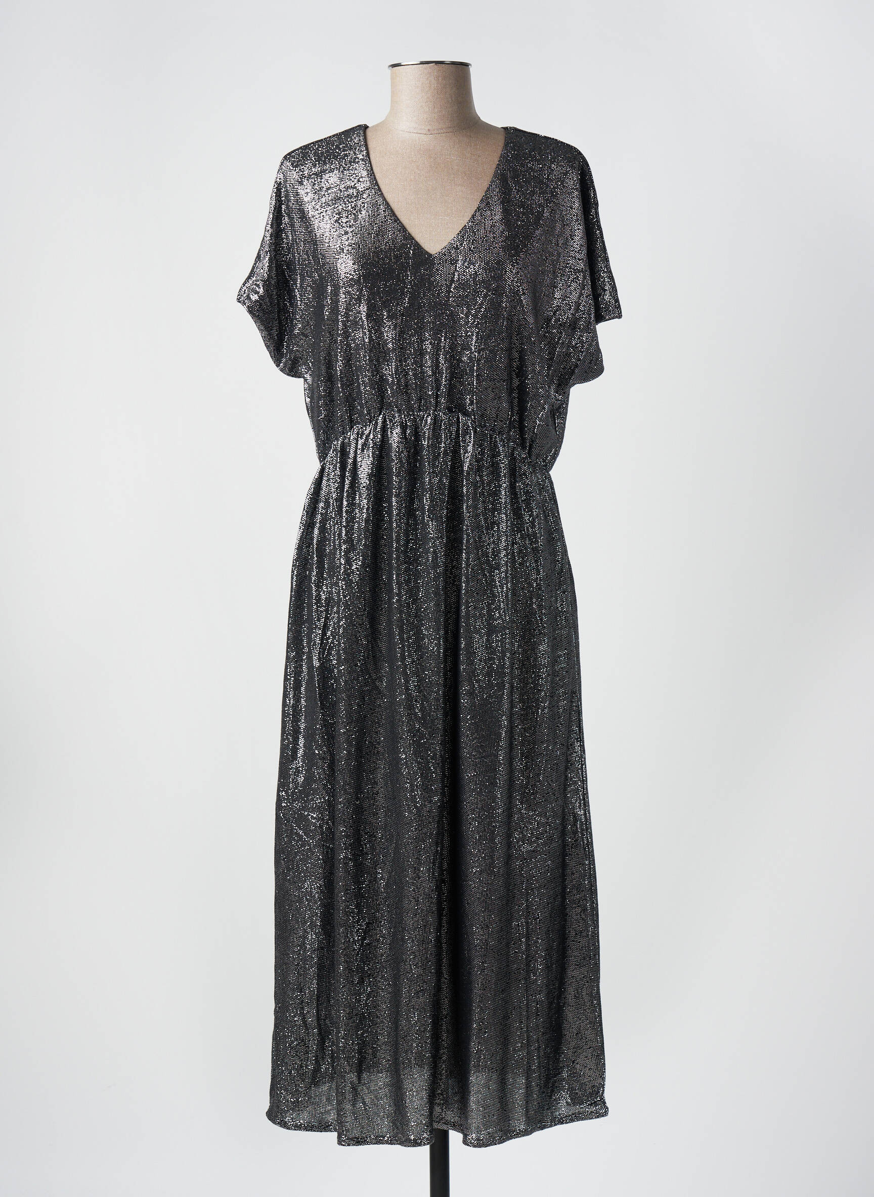 Rochie Midi Vila Gri Mâneci Scurte