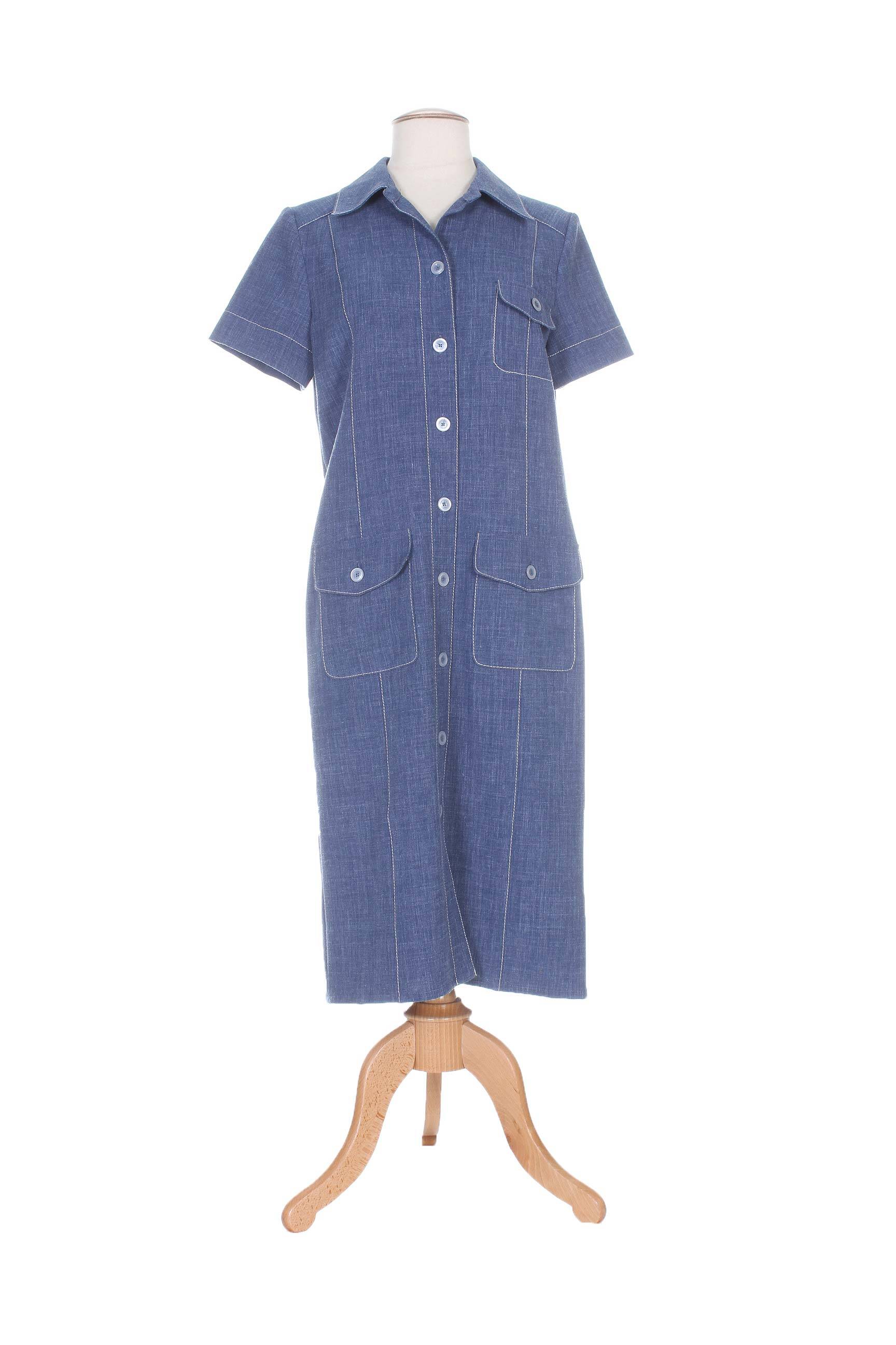 Rochie Midi Weinberg Albastru Mâneci Scurte