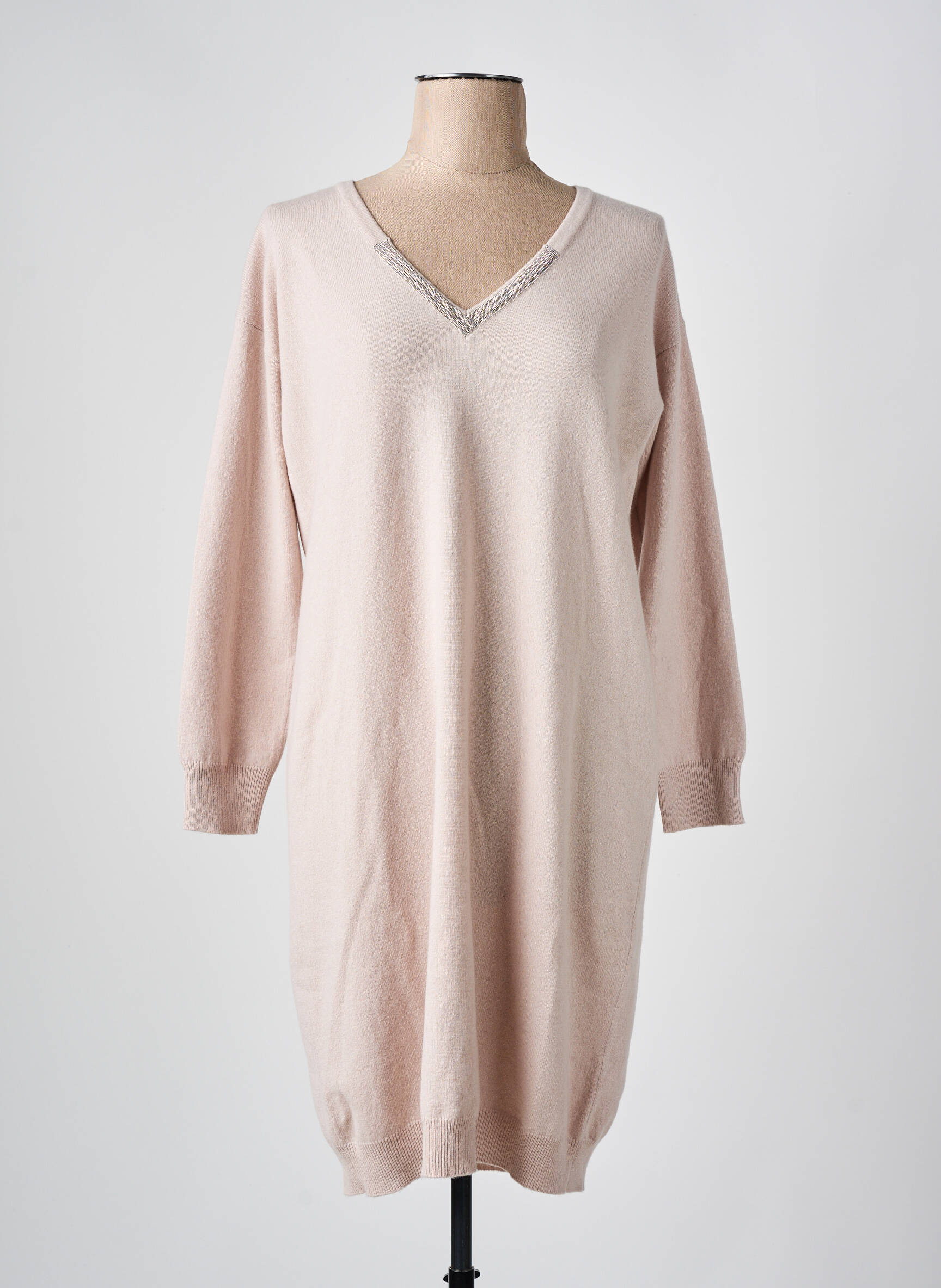 Rochie Pulover Fabiana Filippi Roz Mâneci Lungi